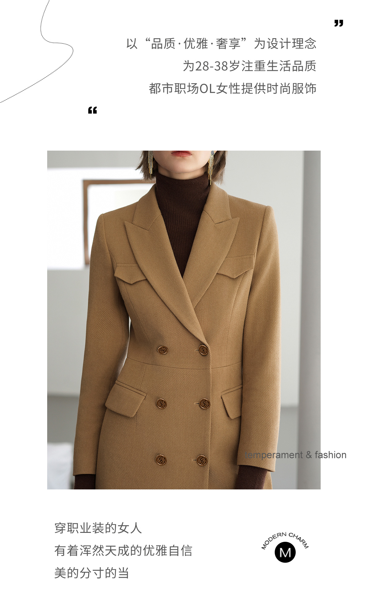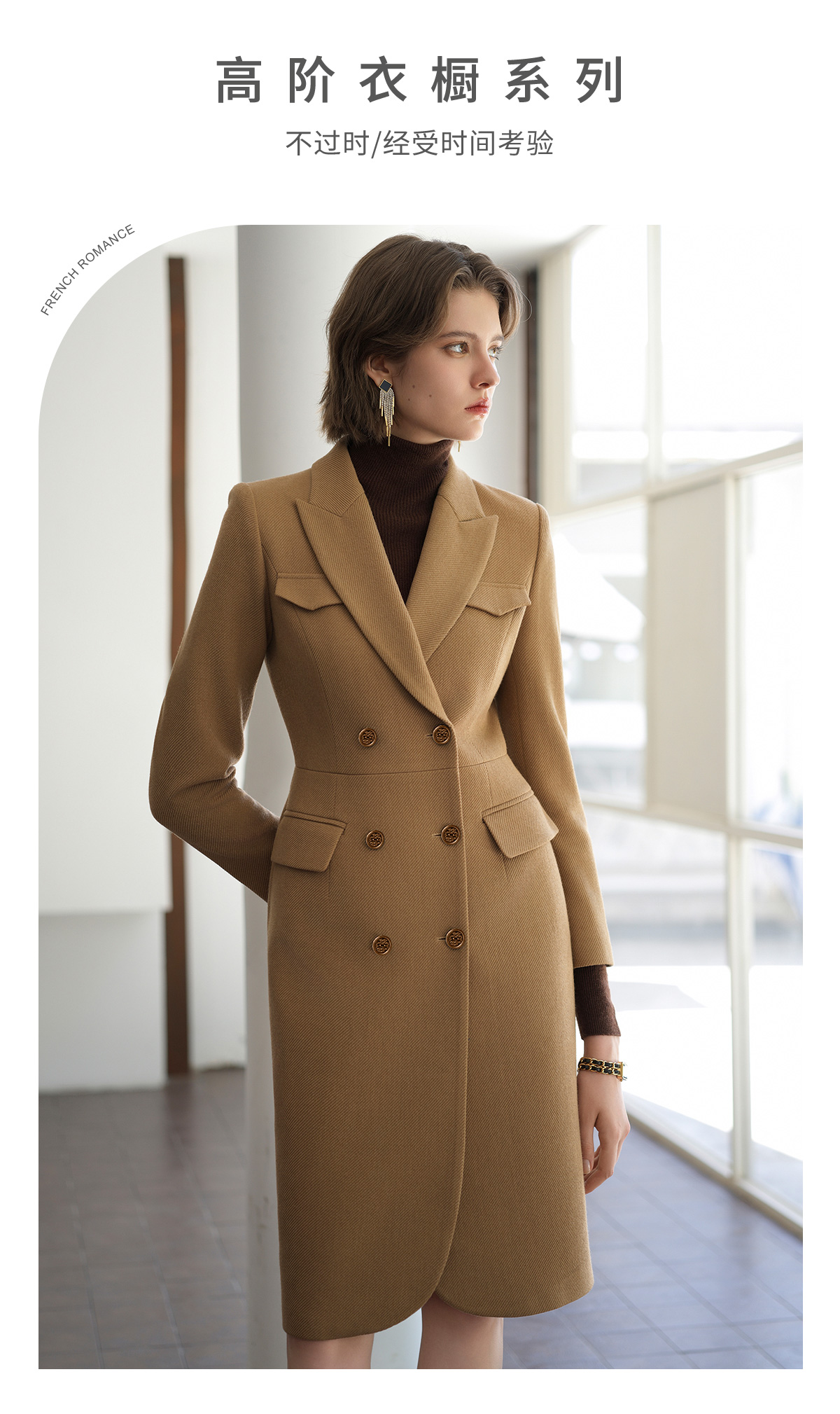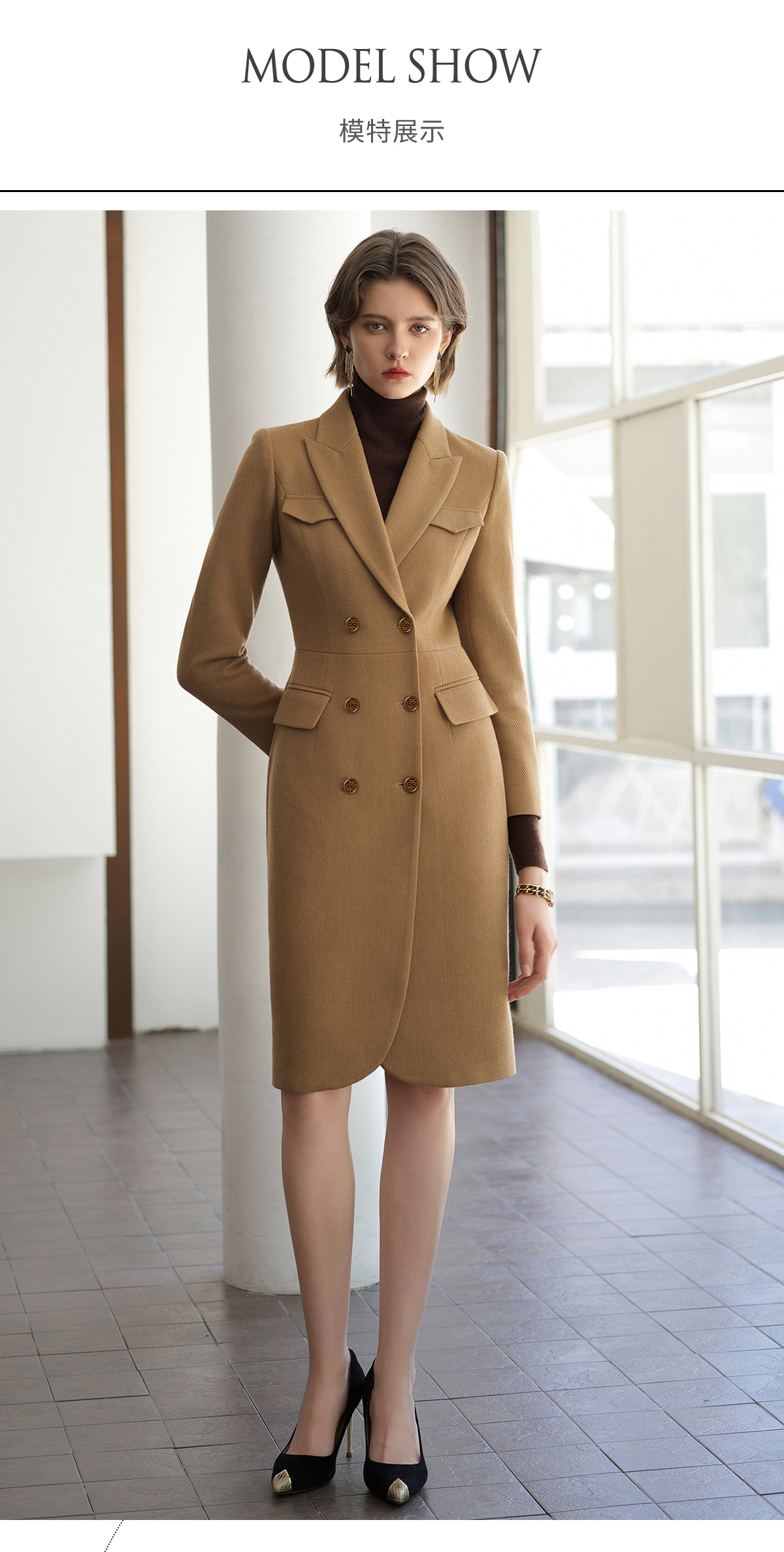 AD极简风西装连衣裙女2024流行卡其色风衣外套经典双排扣职场女装