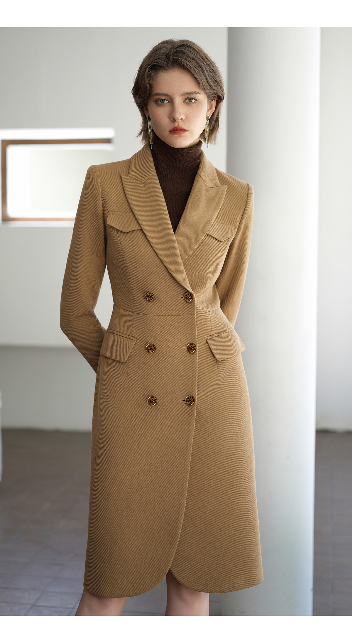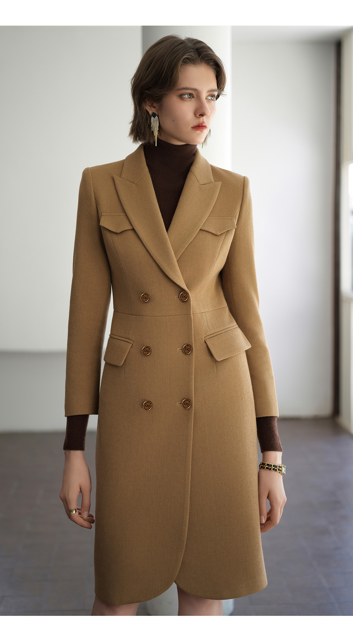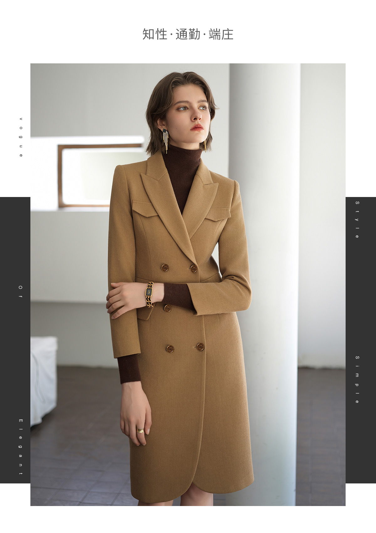 AD极简风西装连衣裙女2024流行卡其色风衣外套经典双排扣职场女装
