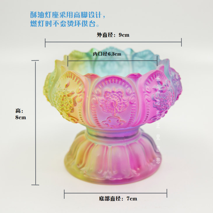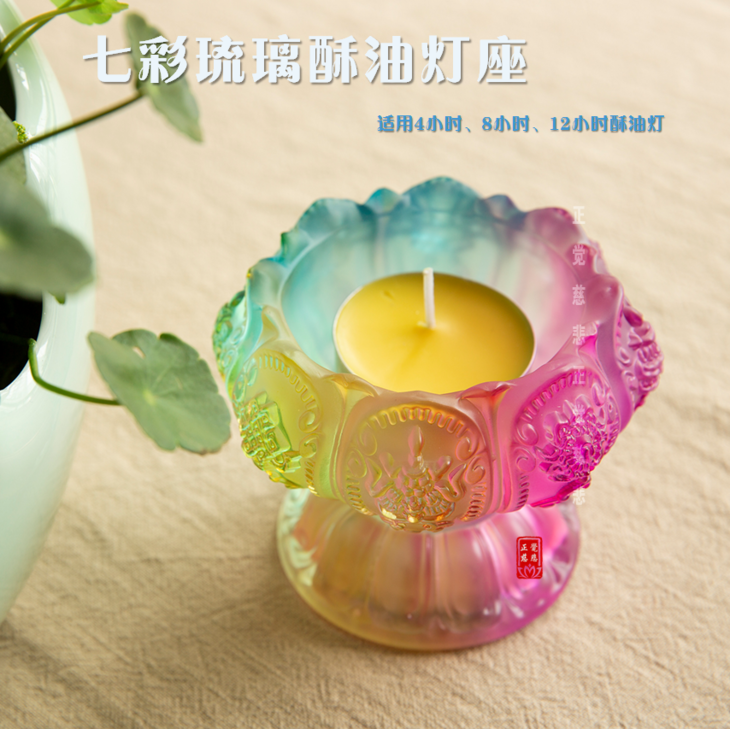 七彩莲花高脚琉璃酥油灯座