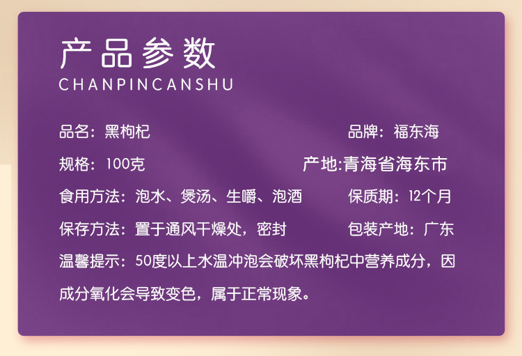 福东海 黑枸杞100克牛头果 青海柴达木诺木洪黑枸杞子南北干货 【中秋礼品】送长辈父母滋补品 企业团购