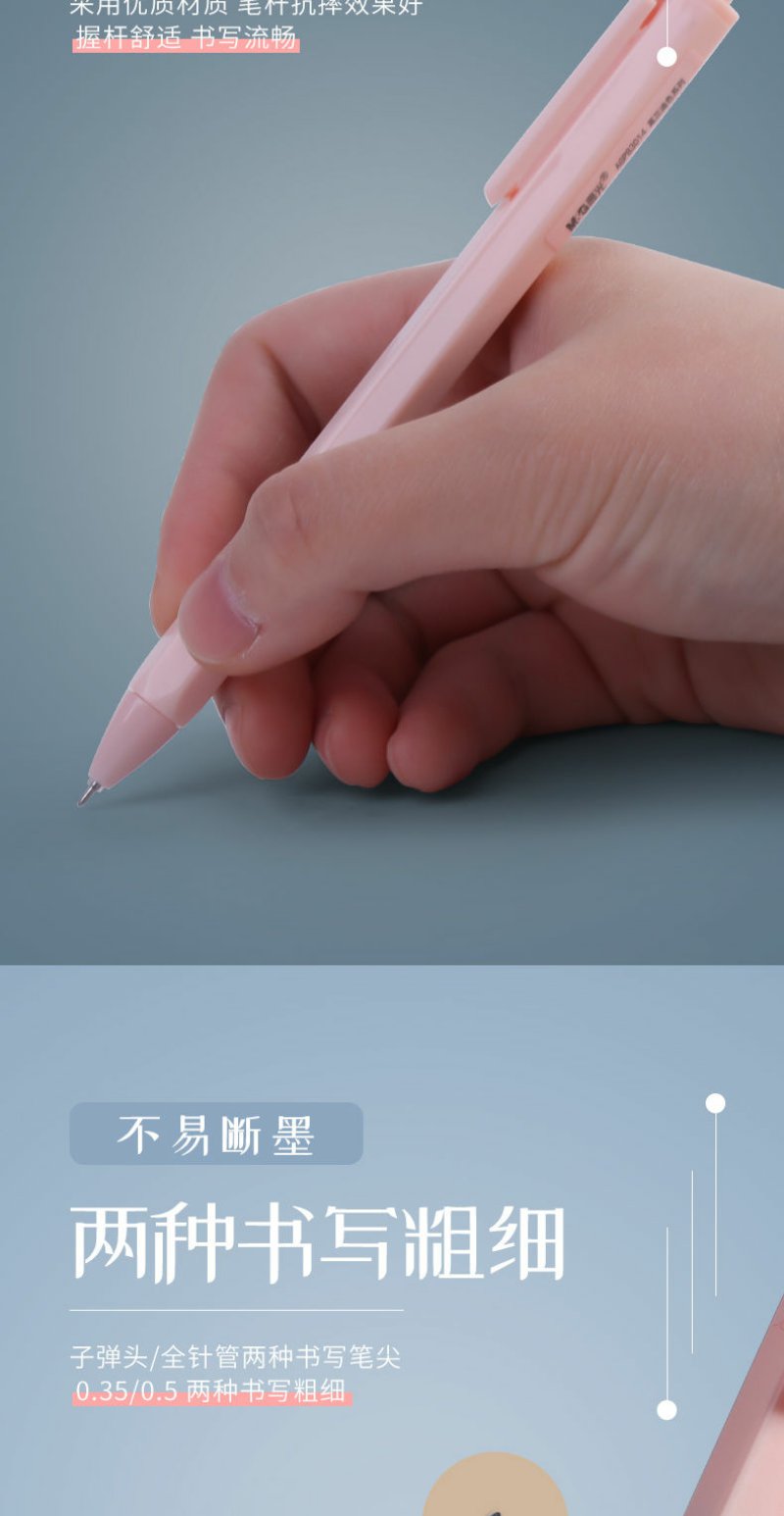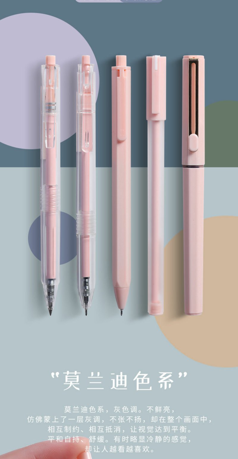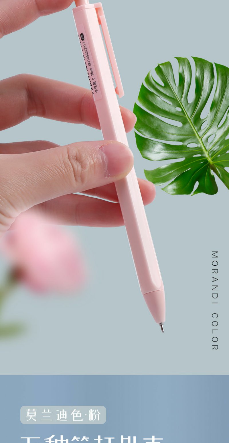 晨光莫兰迪色中性笔子弹头0.5按动全针管0.35碳素黑水笔少女心