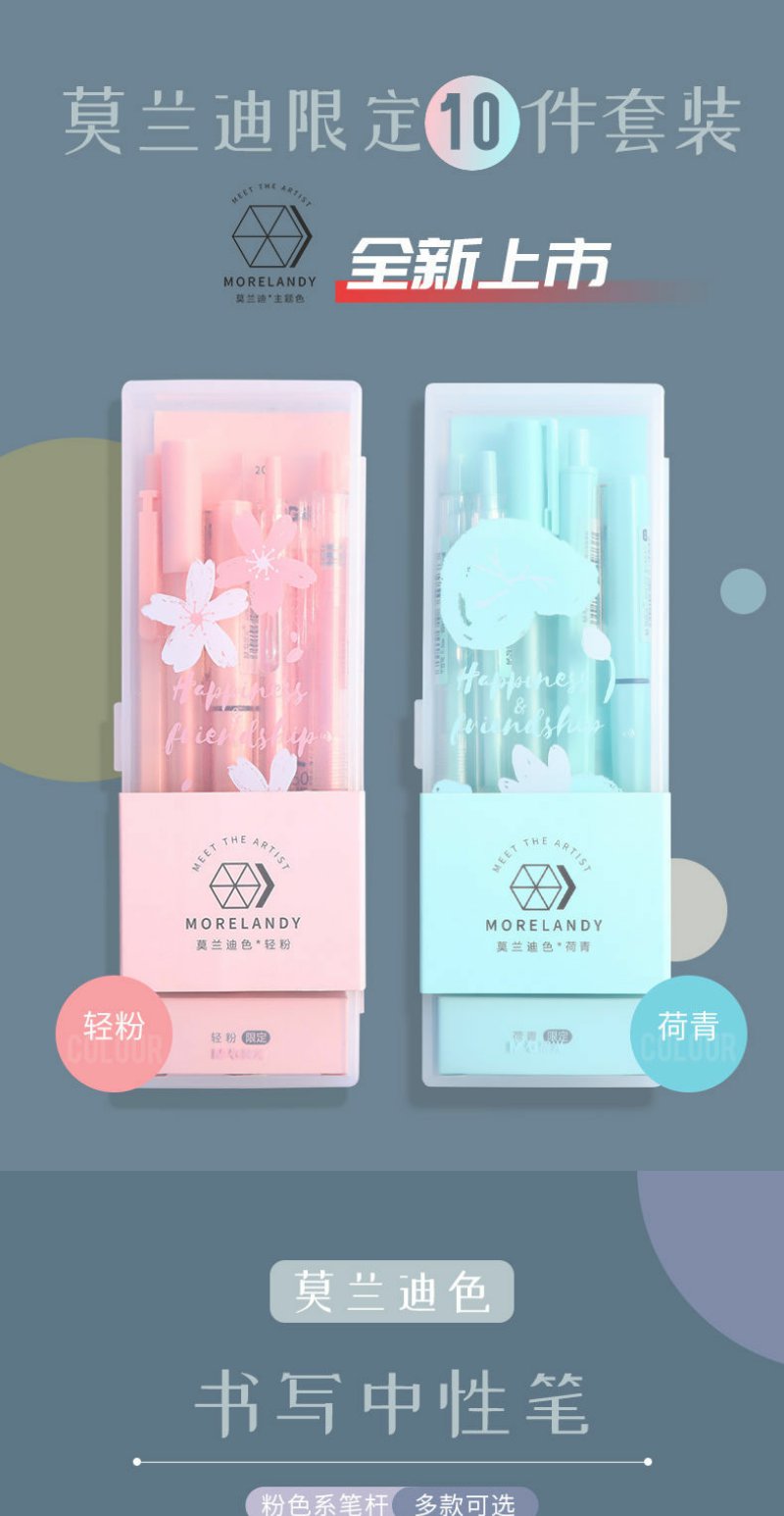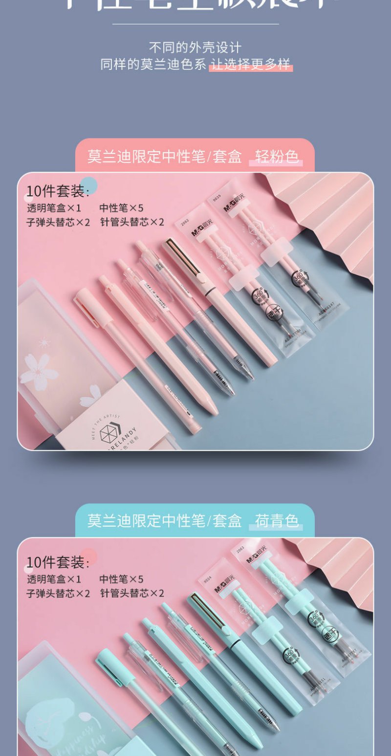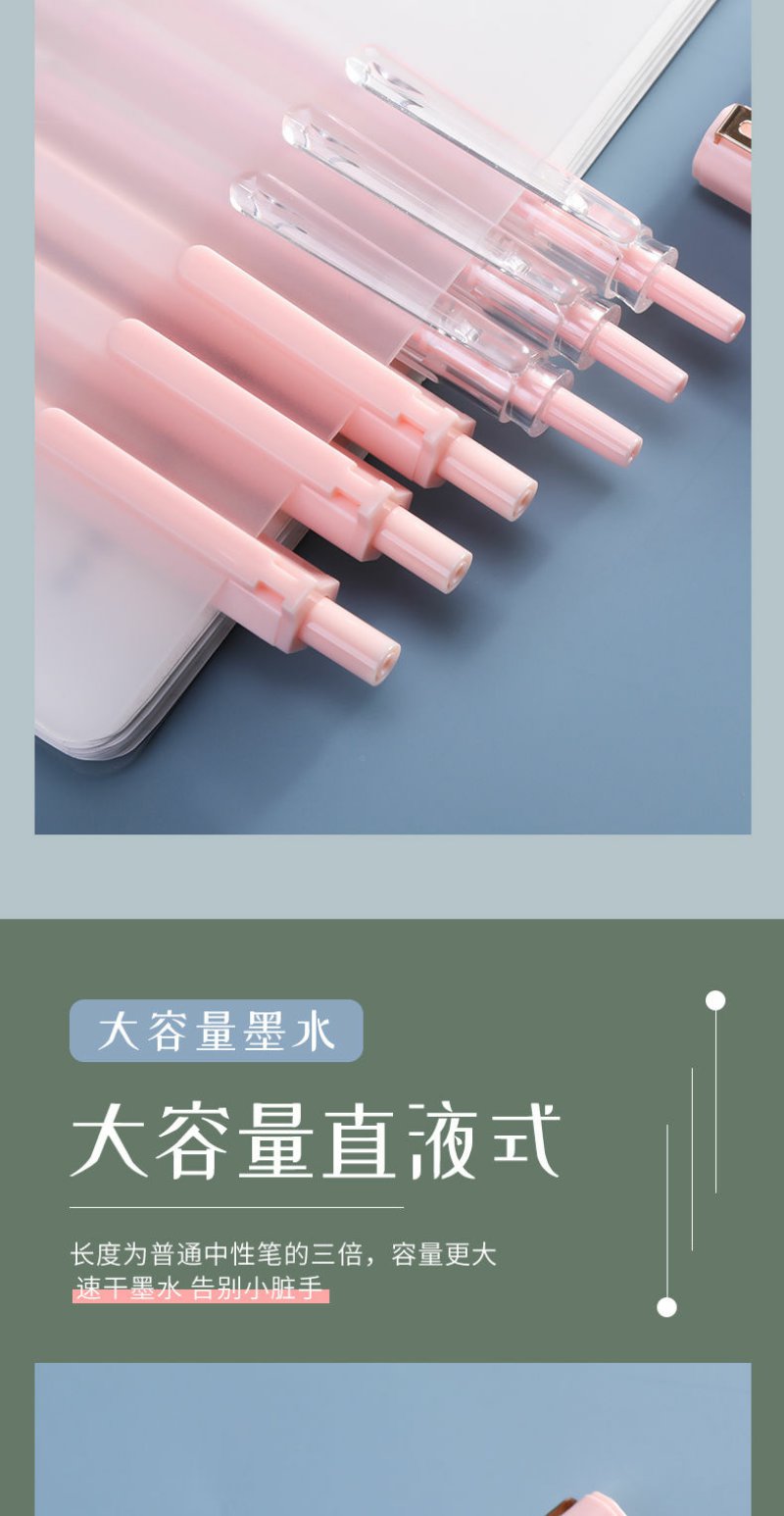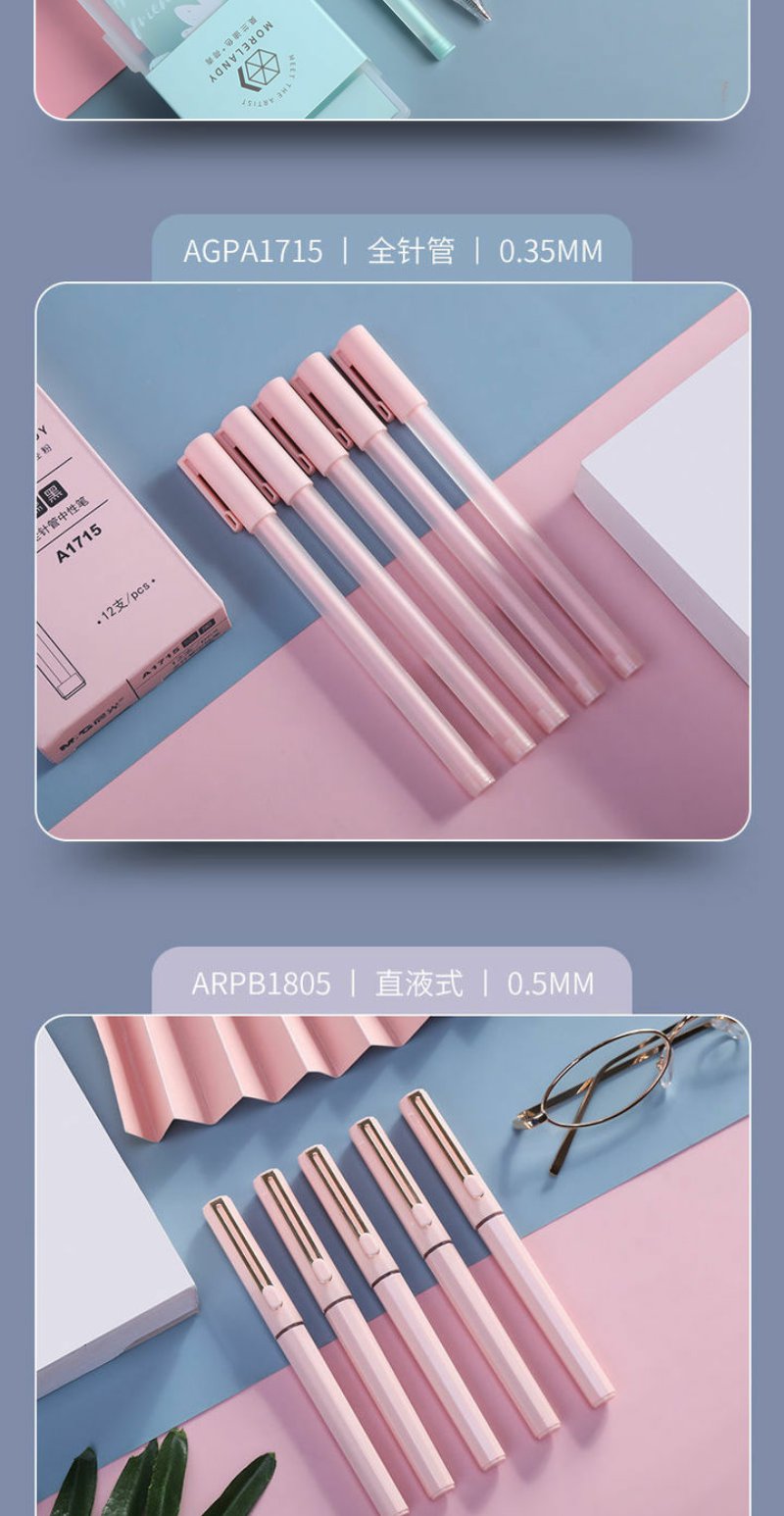 晨光莫兰迪色中性笔子弹头0.5按动全针管0.35碳素黑水笔少女心