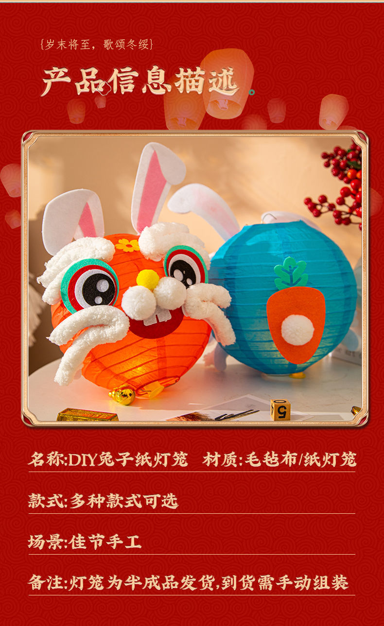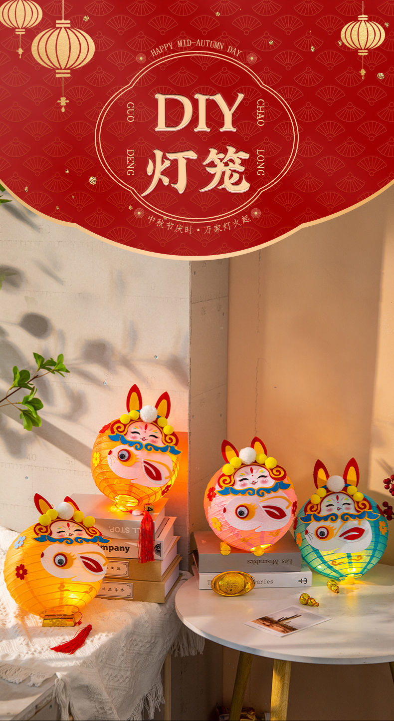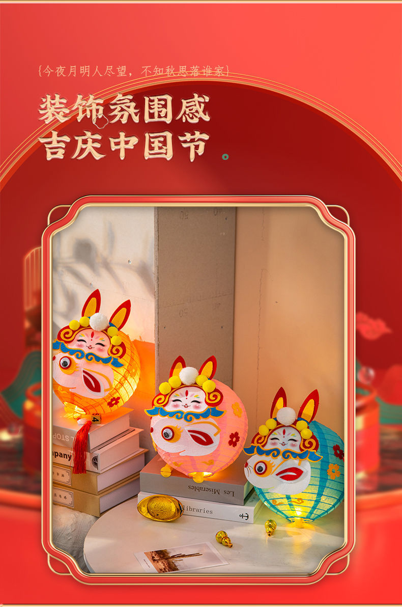 灯笼2023新款中秋节手工diy材料古风兔子花灯国庆节儿童手提挂饰