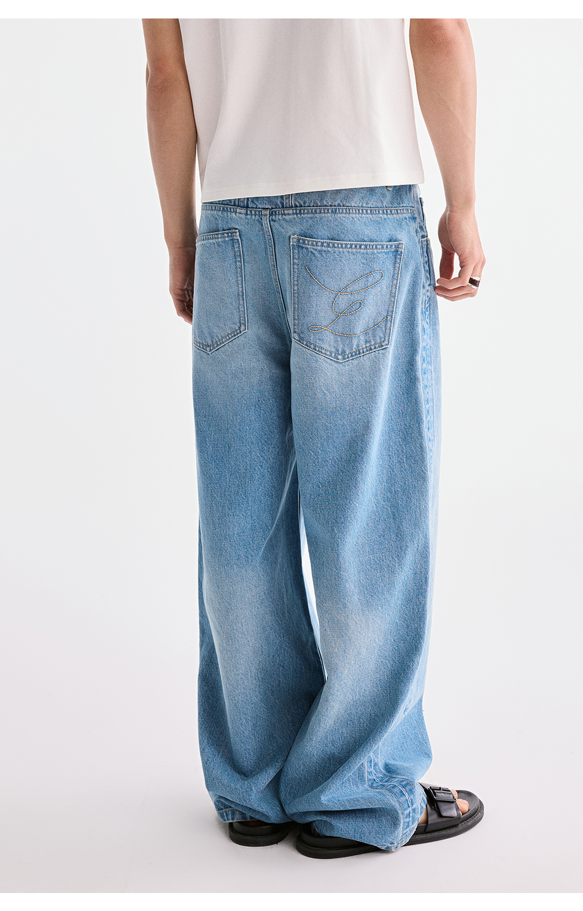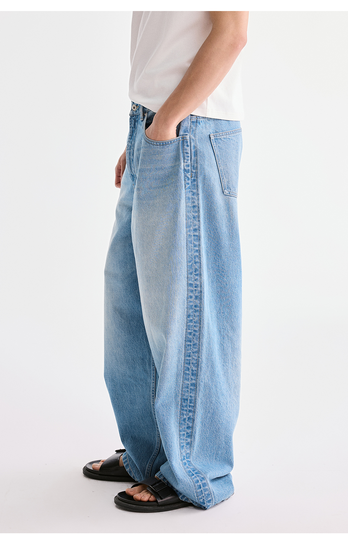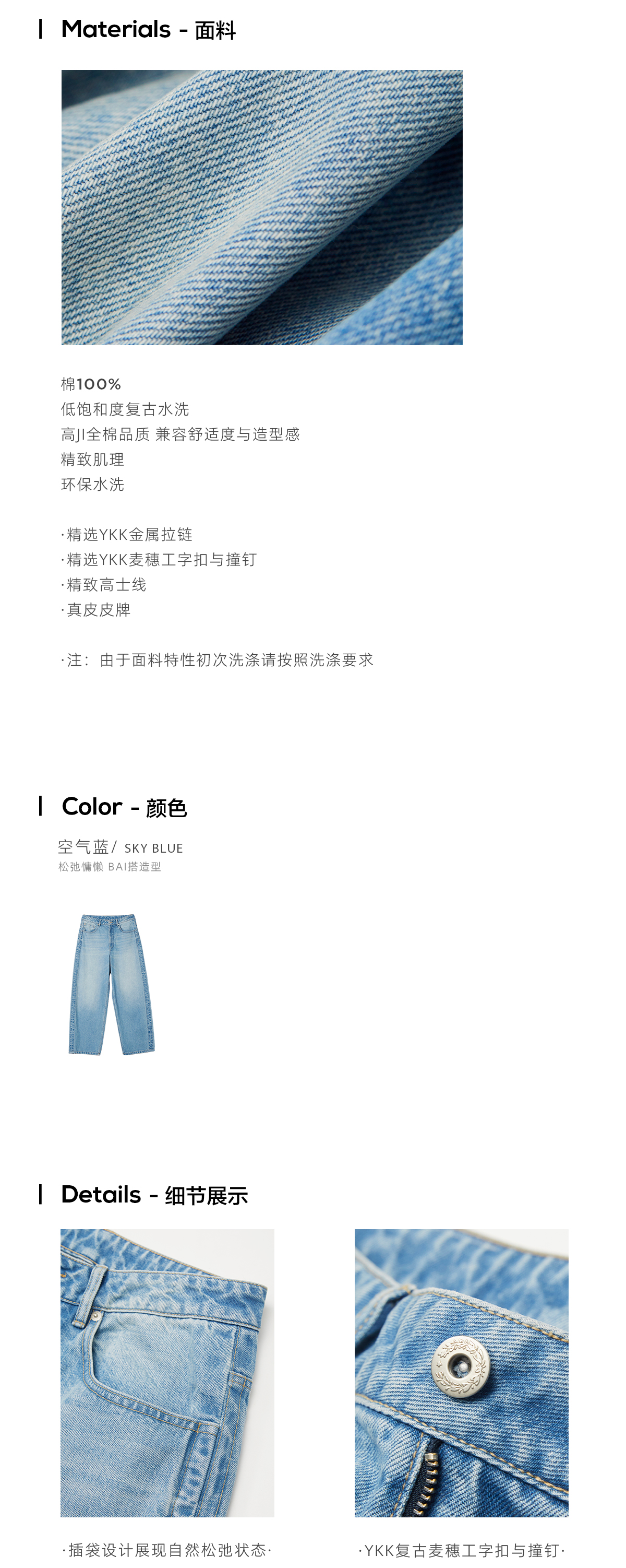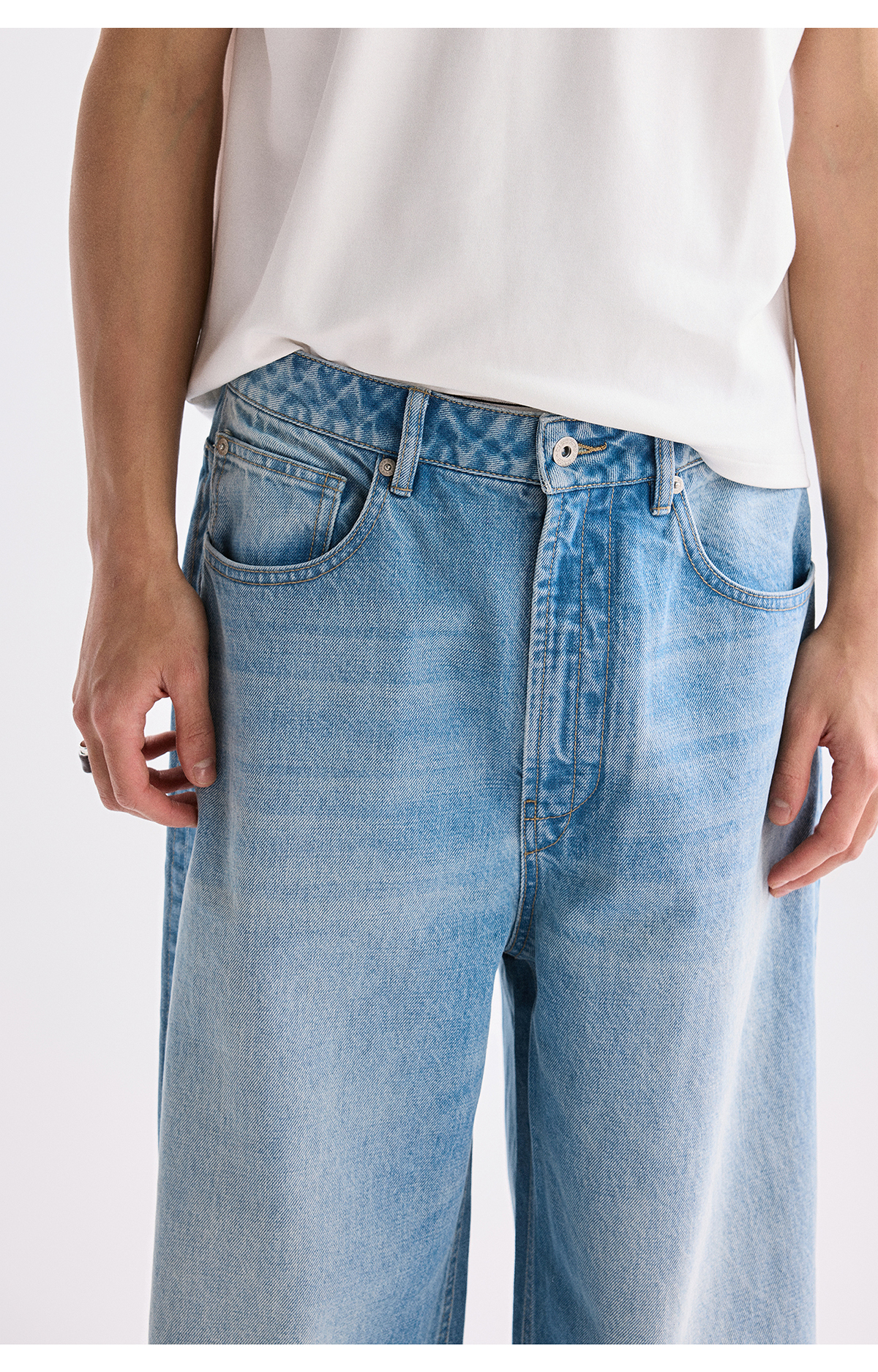 棉仓3621019001-【远空如昨】空气蓝复古水洗设计宽松立体牛仔裤