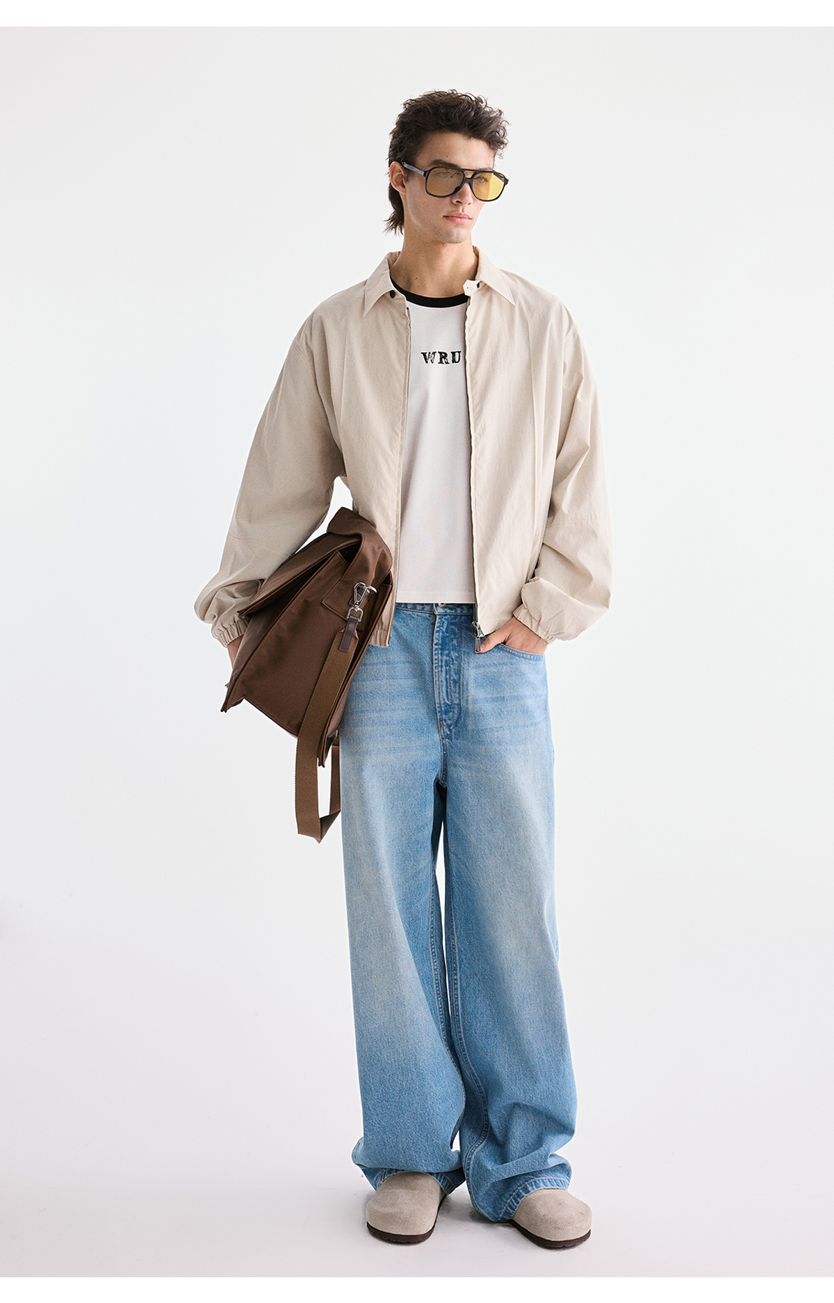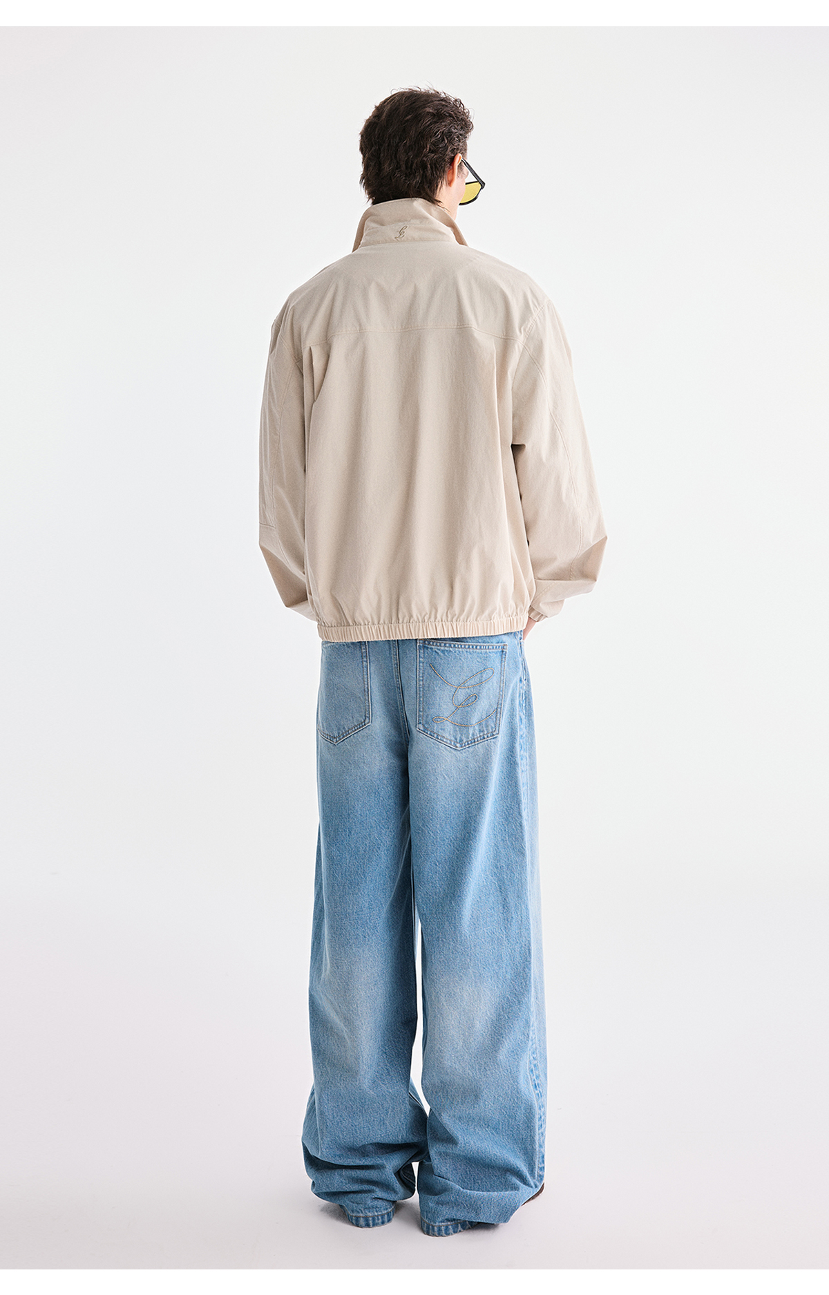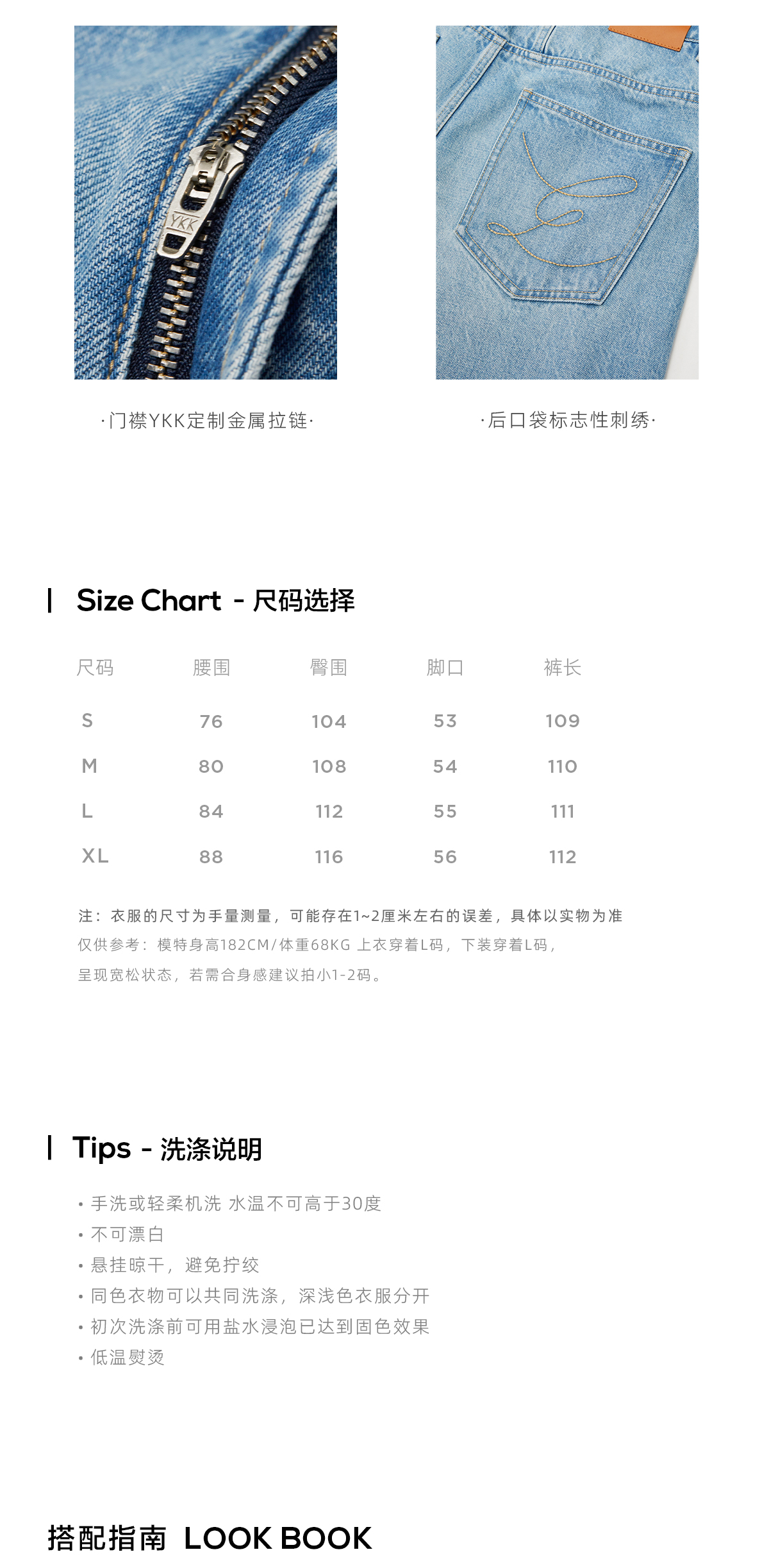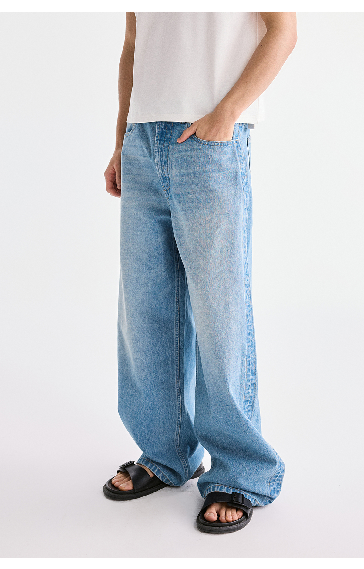 棉仓3621019001-【远空如昨】空气蓝复古水洗设计宽松立体牛仔裤