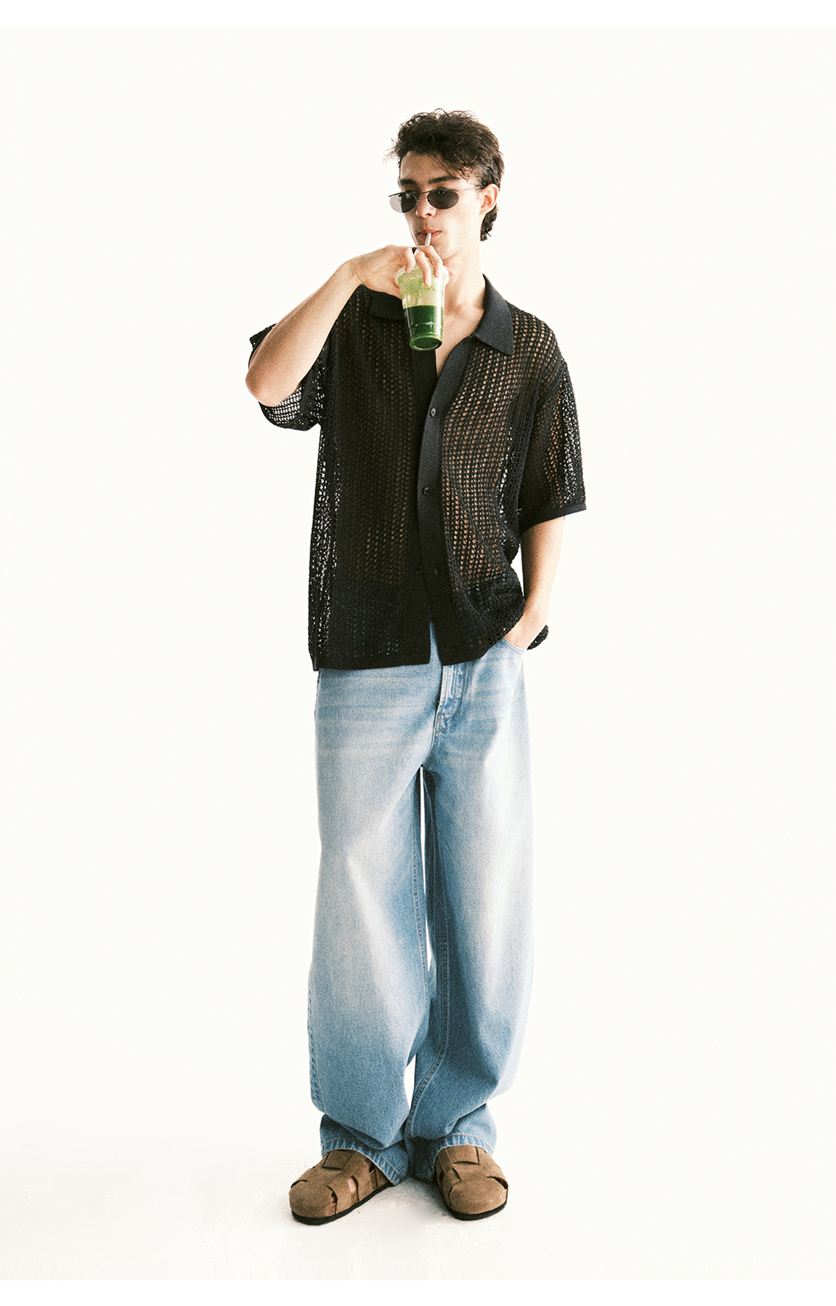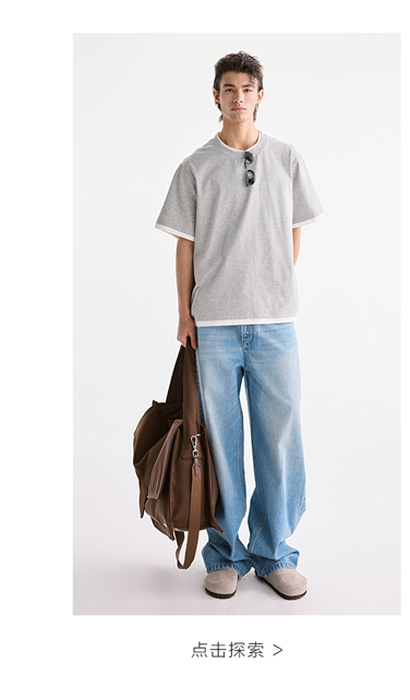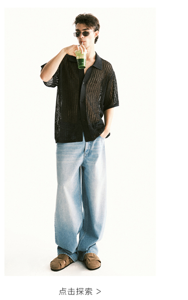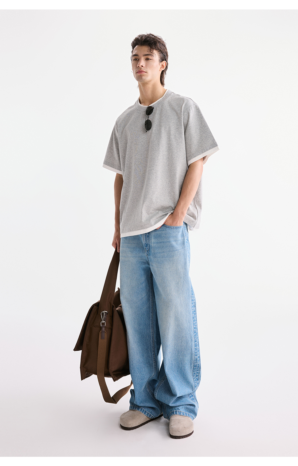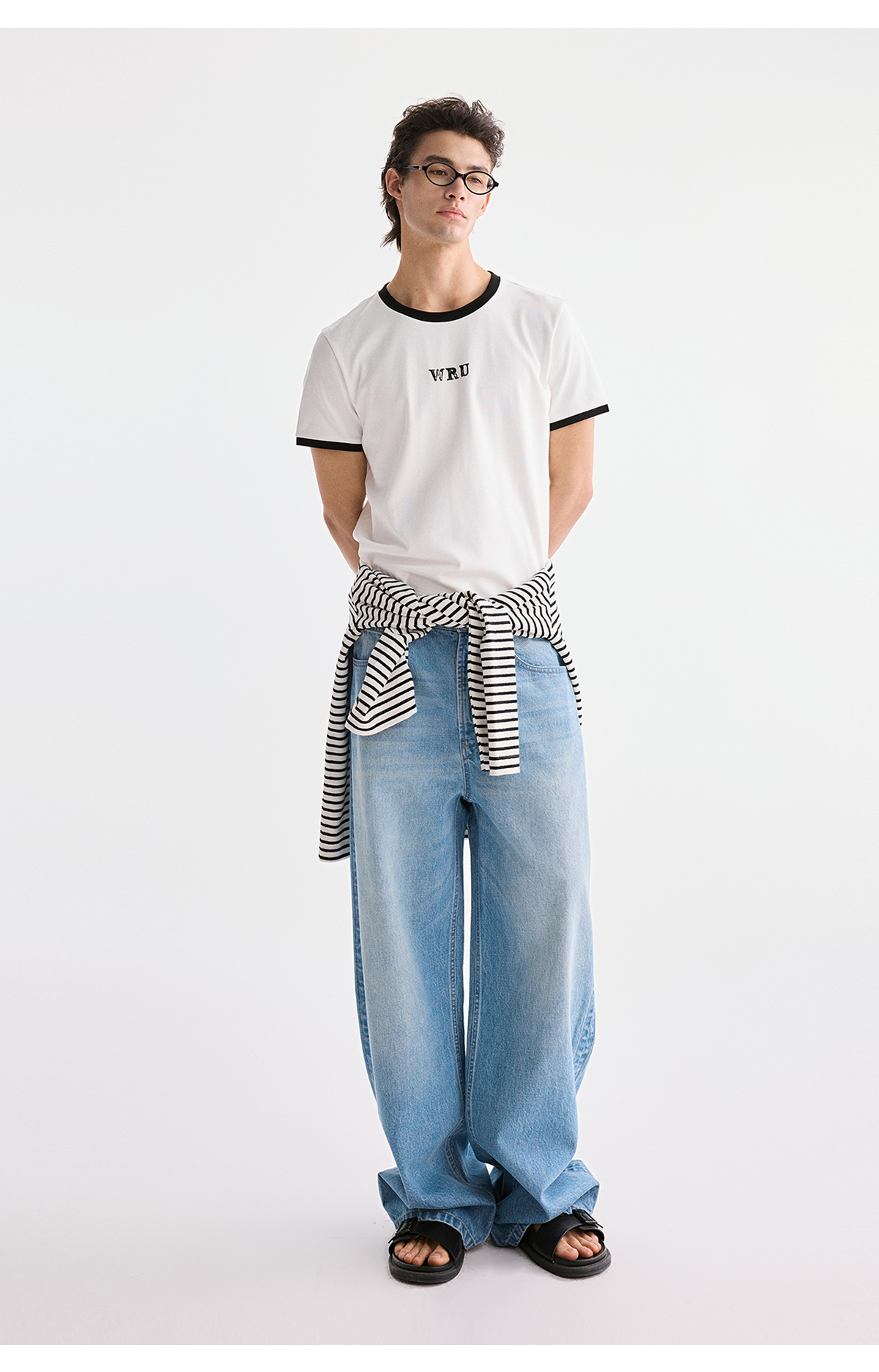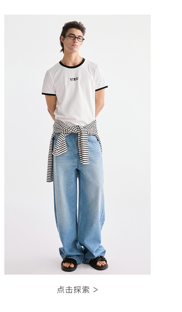 棉仓3621019001-【远空如昨】空气蓝复古水洗设计宽松立体牛仔裤