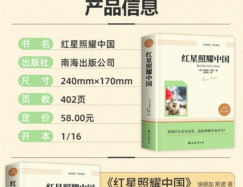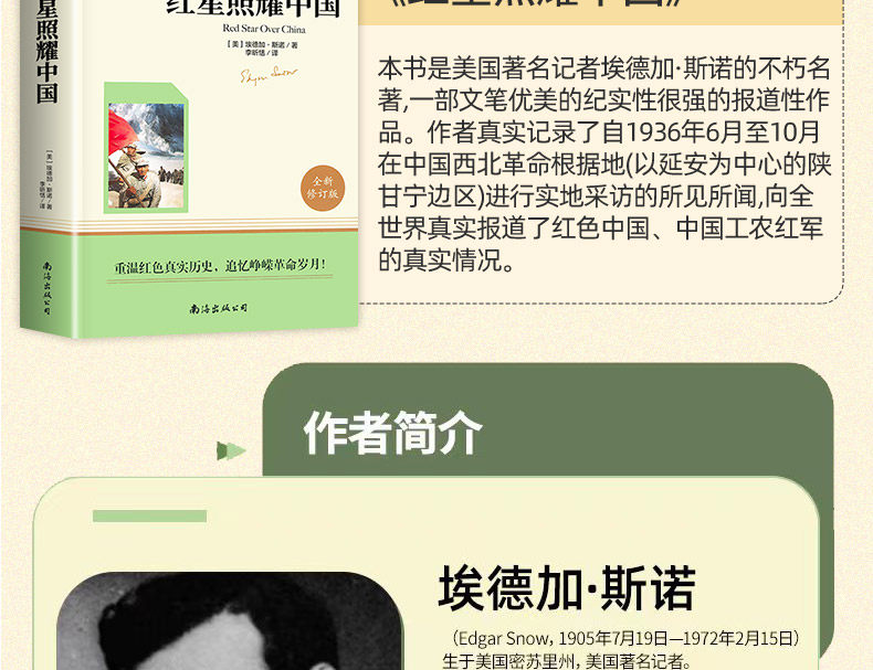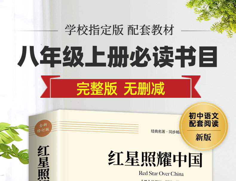 赠考点 红星照耀中国正版原著完整版无删减八年级上册名著课外书西行漫记青少版初中生必课外阅读书籍读南海出版社
