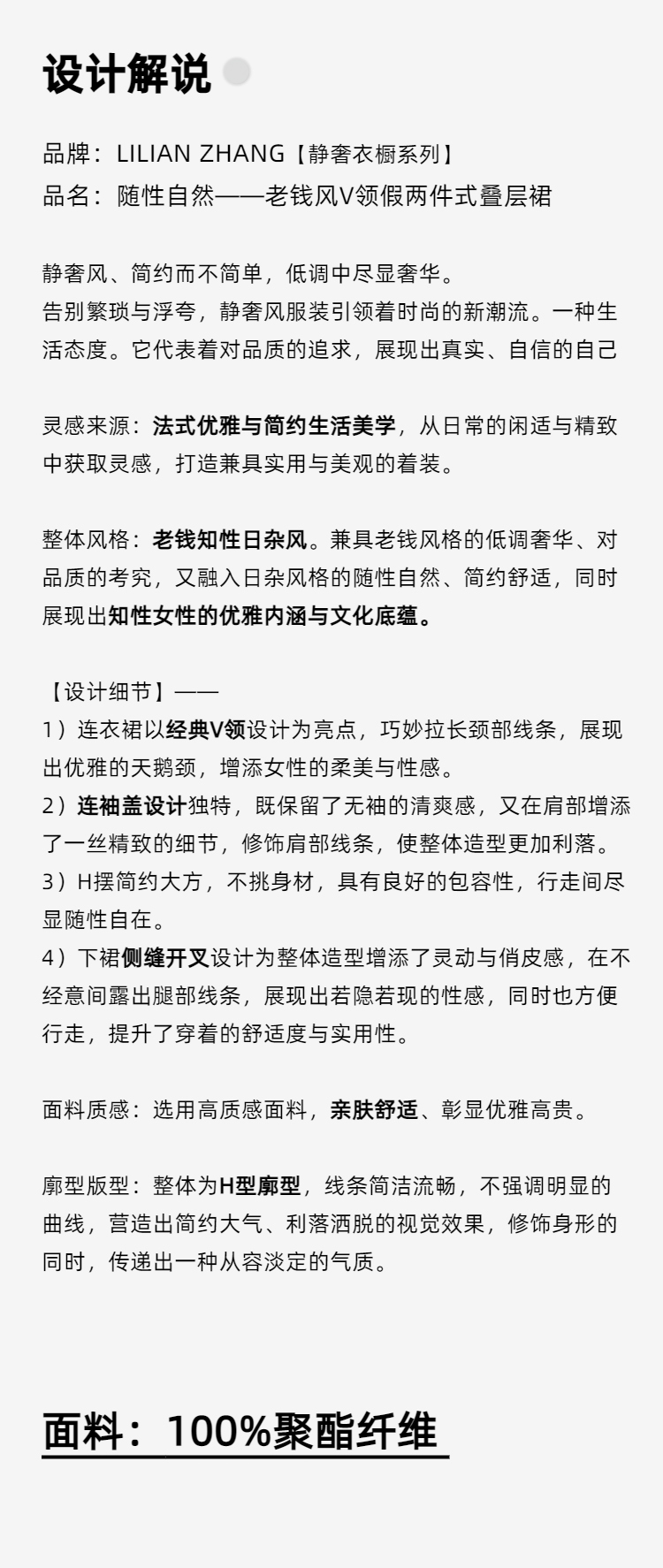E“定制”——静奢风——随性自然——老钱风V领假两件式叠层裙 2501019