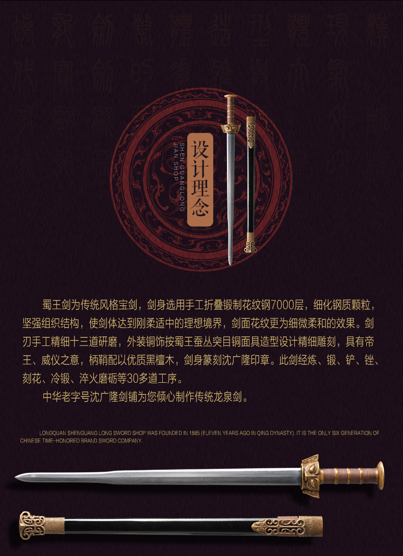 - 龙泉沈广隆剑舖创始于1885年(清光绪)位于浙江省龙泉市,是当地唯一一家“子承父业”一脉相承的中华老字号宝剑生产企业,是国家级非物质文化遗产龙泉宝剑项目保护单位,并以“天下第一剑”闻名于海内外....