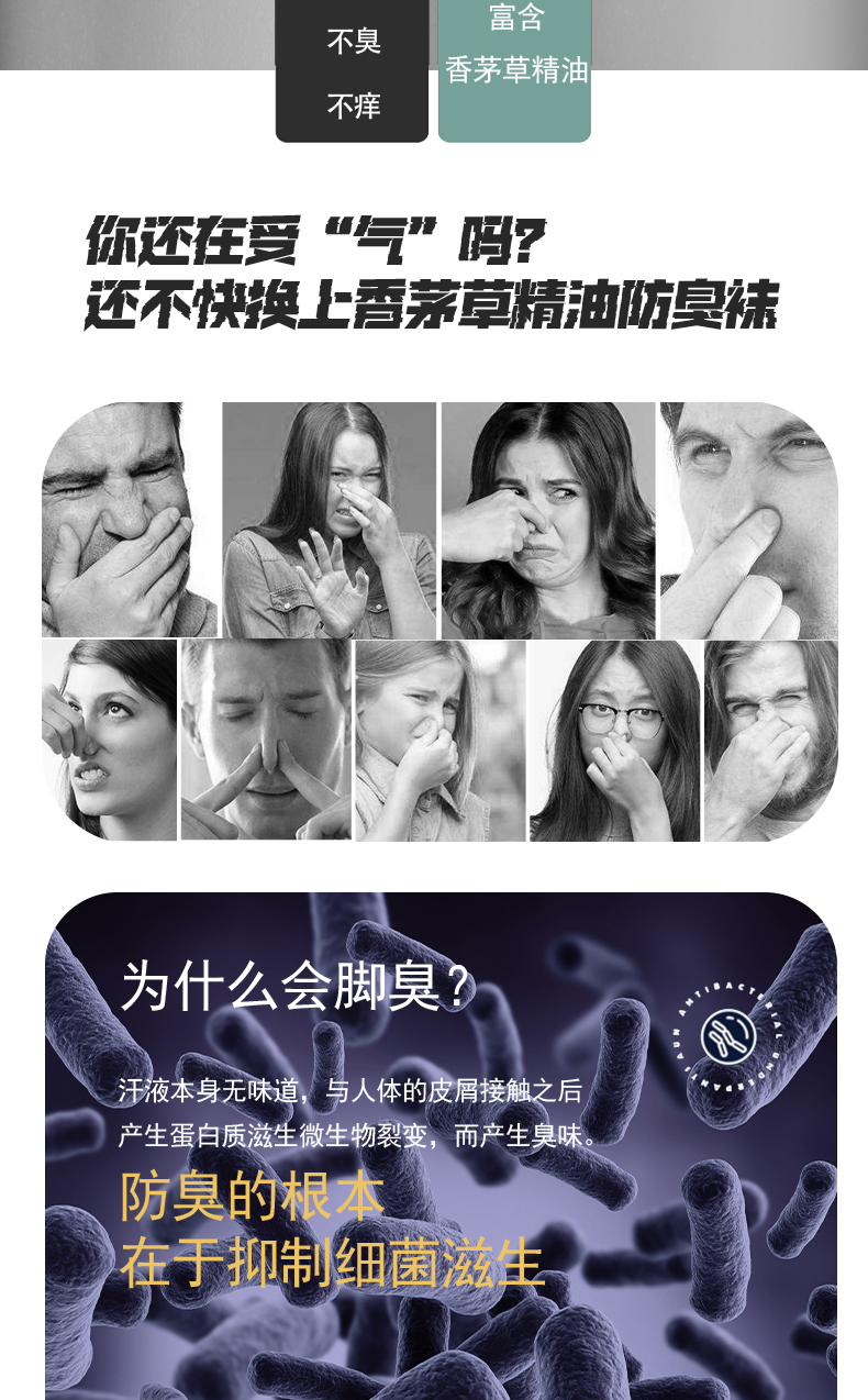 【米莫印品 黑科技赋能香茅草精油袜】专利抗箘消臭除臭 水泡脚痒排汗透气 舒适柔软持久回弹 抗箘润肤精油袜 男女款同款 告别香港脚!精美礼盒装/5双