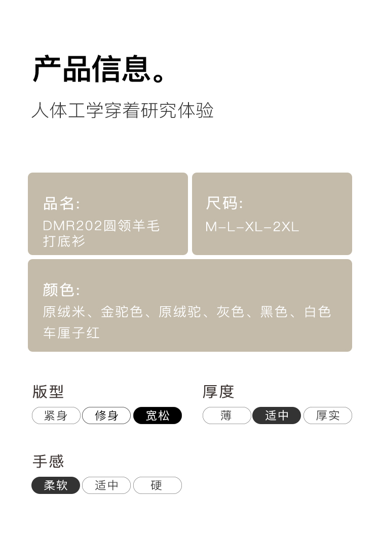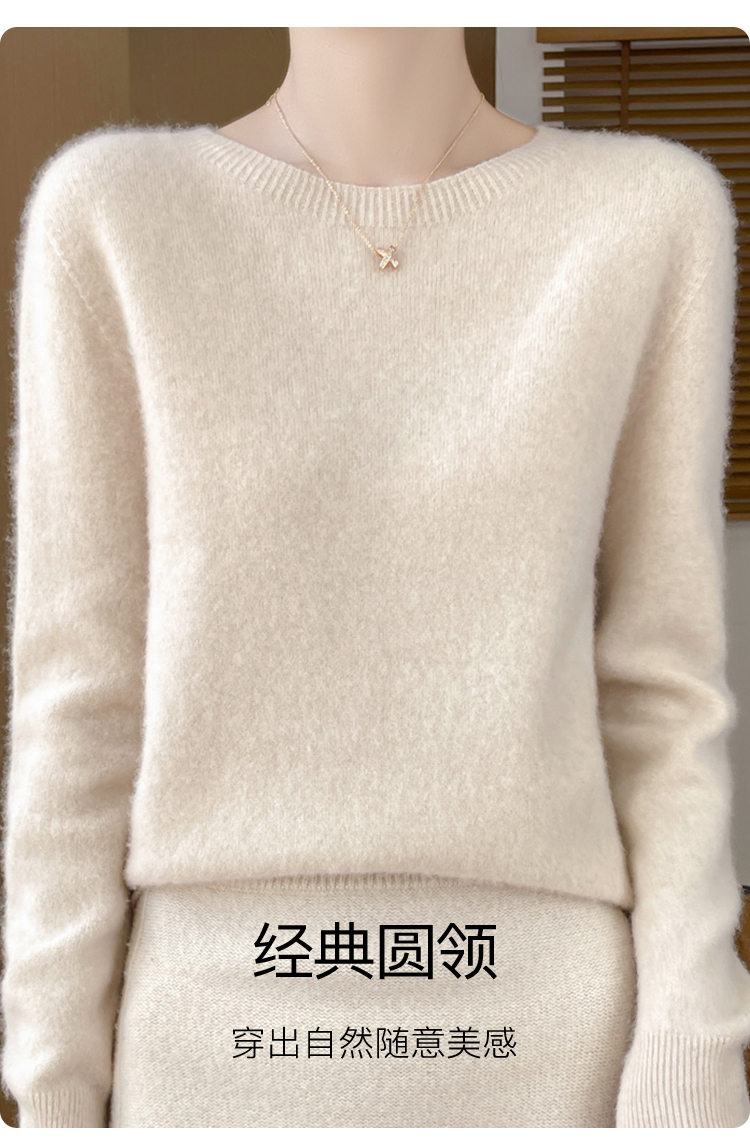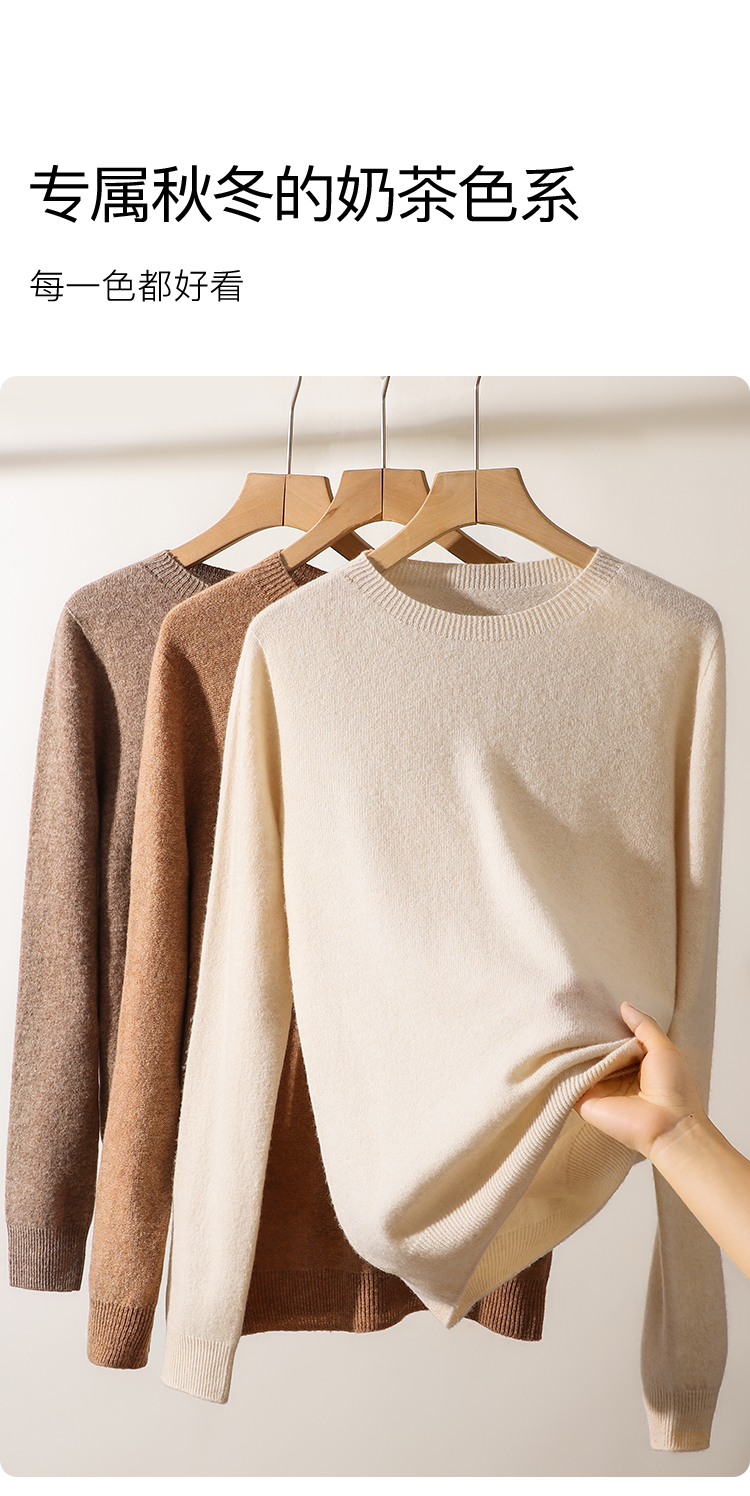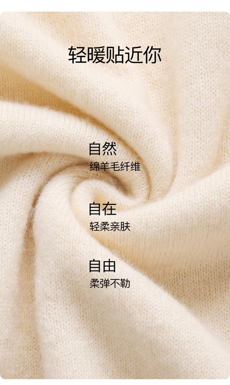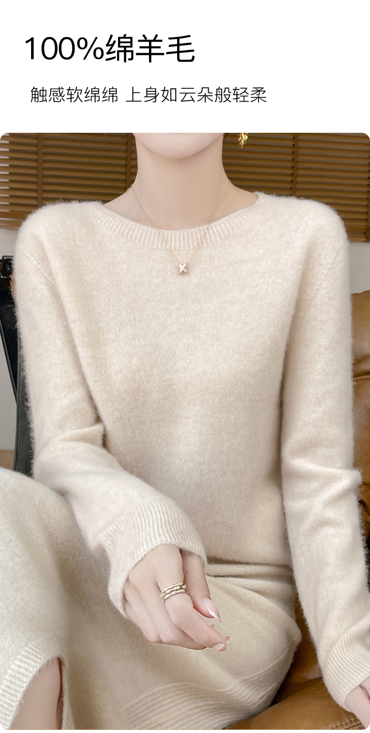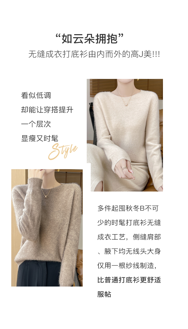 高级感内搭【100%绵羊毛】时尚圆领打底衫女无缝舒适一体成型圆领羊毛打底衫