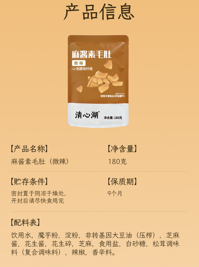 纯素麻酱素毛肚(微辣) 香辣解馋 麻酱香味浓郁 Q弹爽口 微脆有韧劲 越嚼越香 纯素零食
