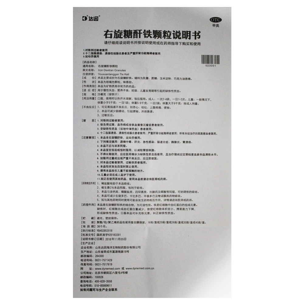达因右旋糖酐铁颗粒25mg*30袋/盒小儿缺铁性贫血