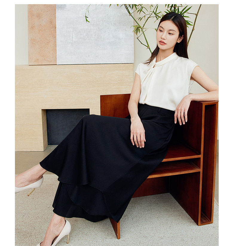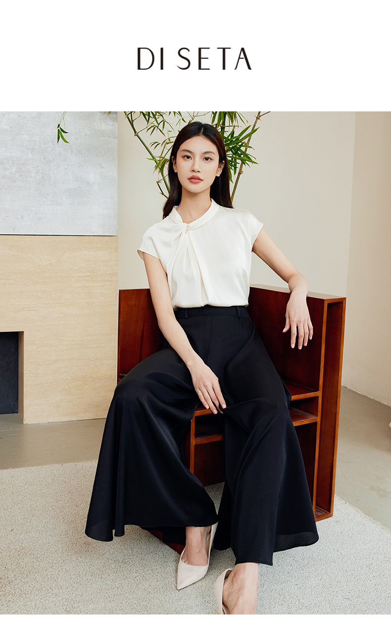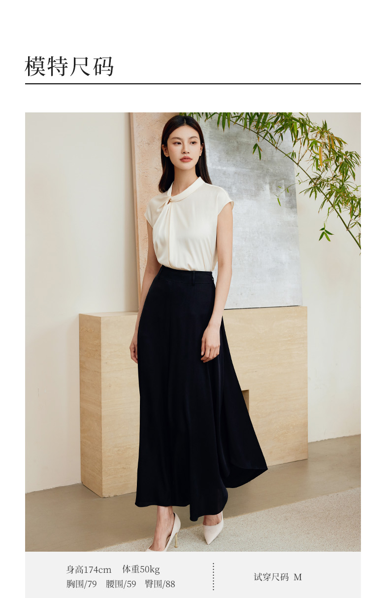 玳莎重磅真丝裙裤女2024夏季新款通勤宽松设计感大摆阔腿休闲裤 EB36304