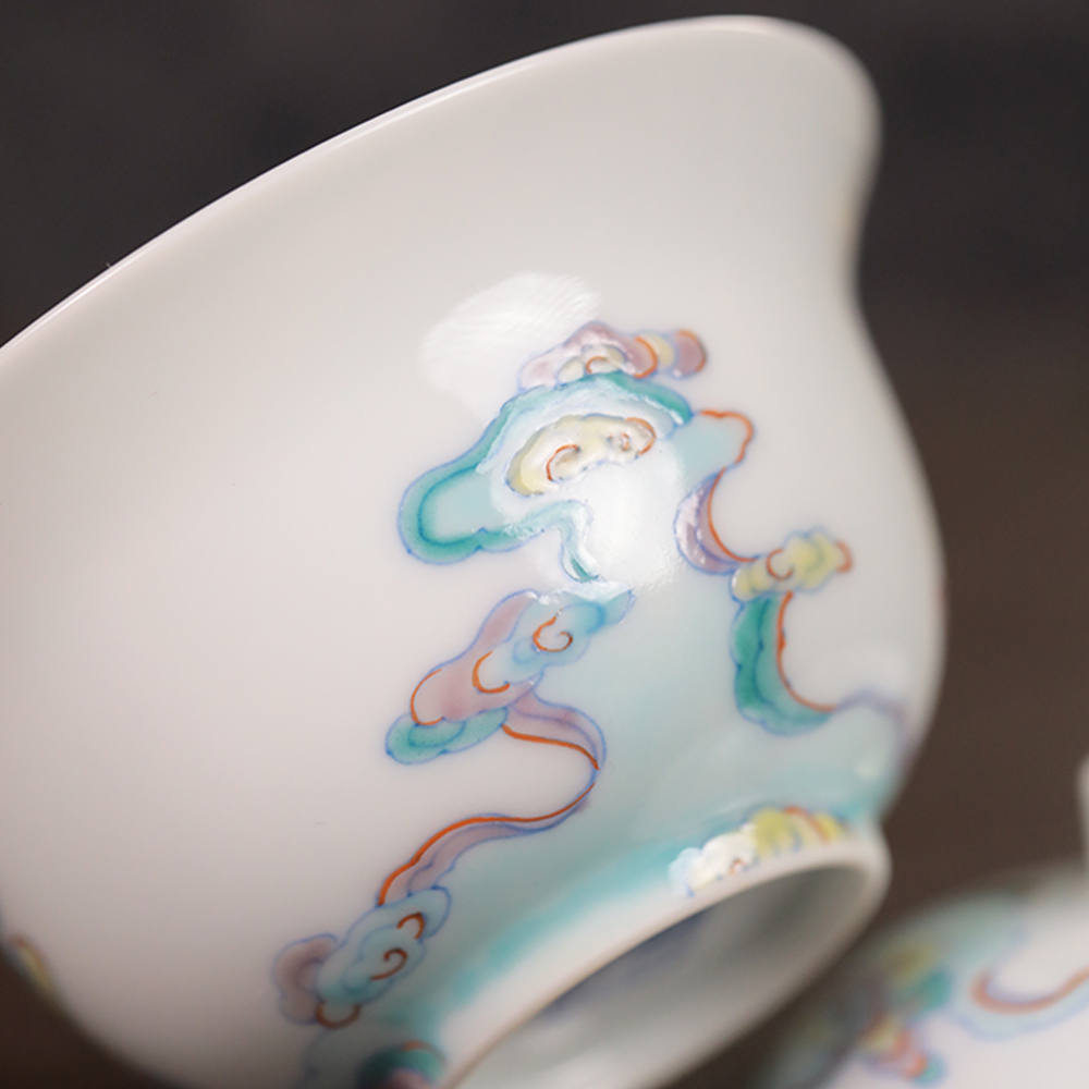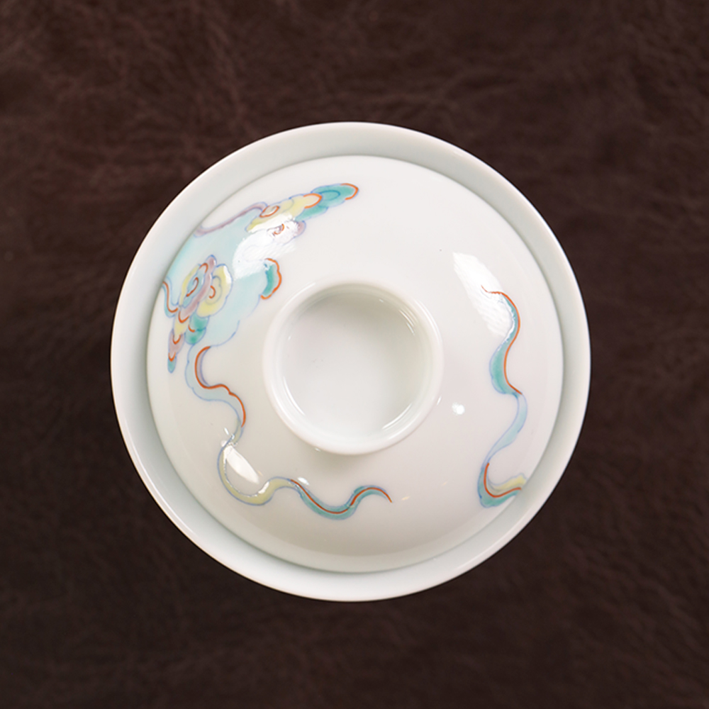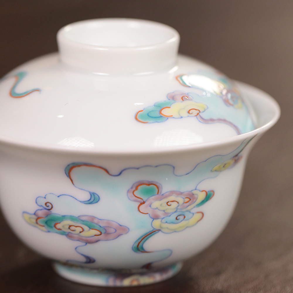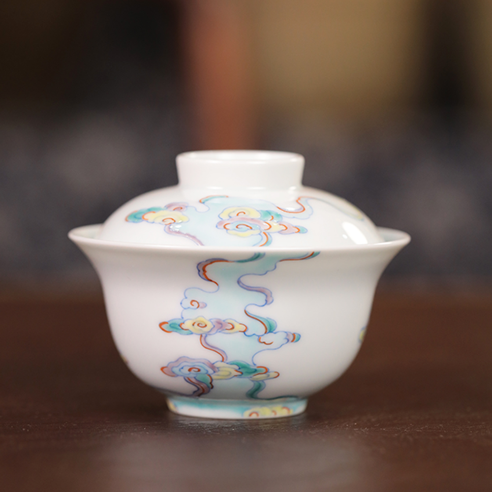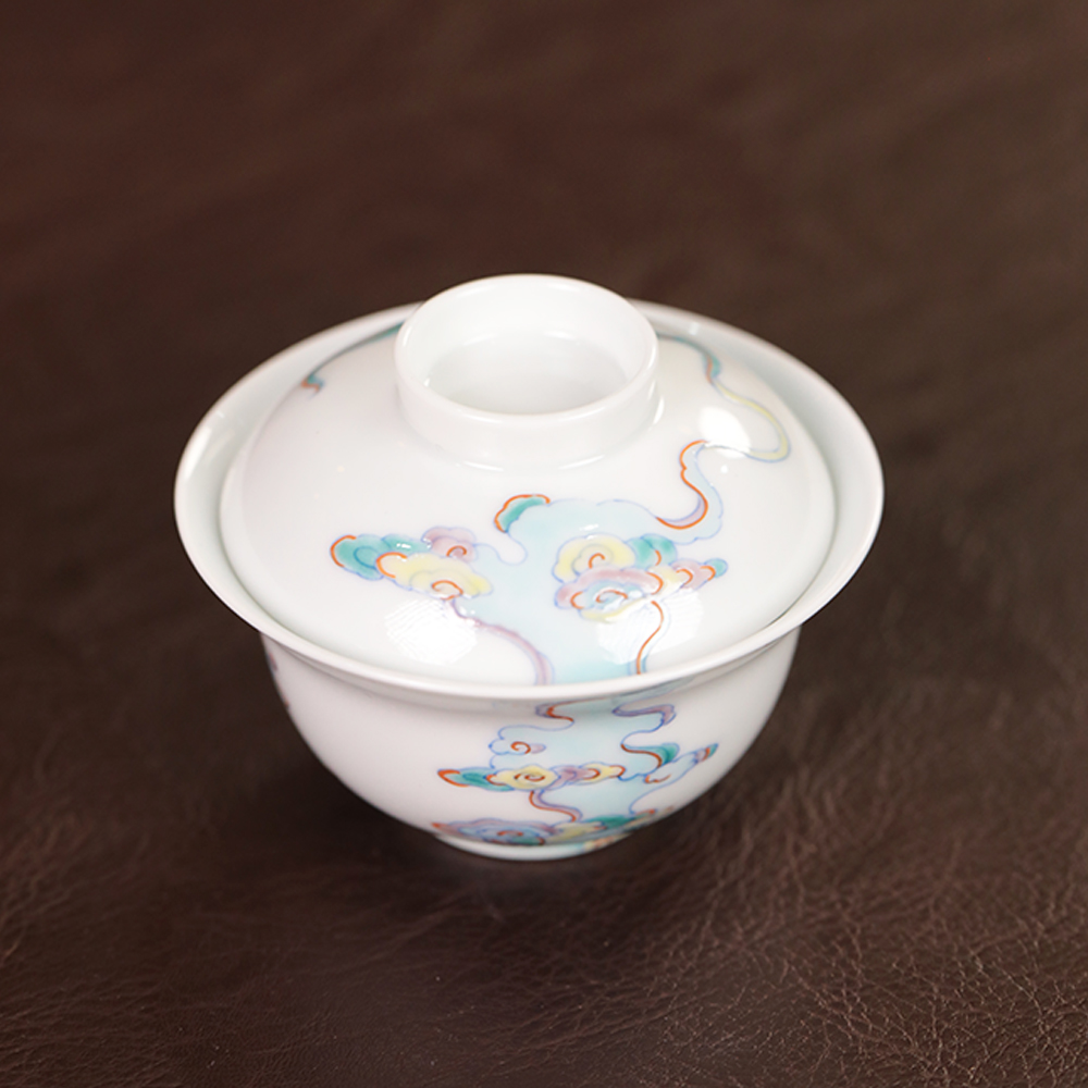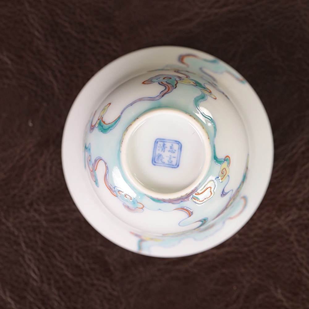 【忘言】斗彩祥云纹折沿小茶碗盖碗 曰何文人器