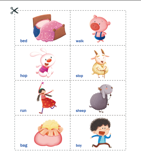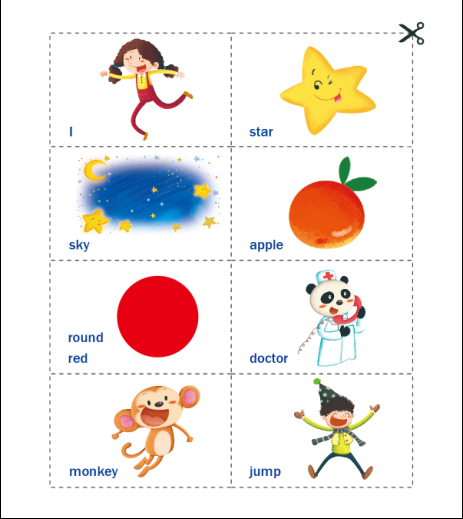 附赠单词卡片。单词都是书中学习过和重点单词。请延虚线剪下,用游戏的方式和孩子一起复习:妈妈出卡片孩子读,或妈妈念英文孩子找卡片。
