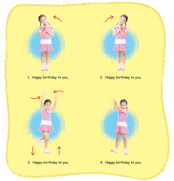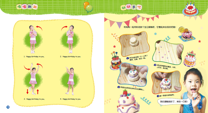 第二个对页有两个内容,一是“唱唱跳跳”教孩子简单律动,二是“动动手吧”有各种孩子喜欢的小游戏。