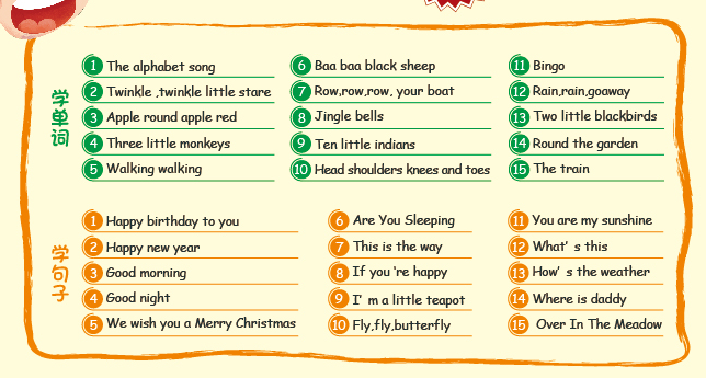 《字母歌》《小星星》《新年快乐》《祝你圣诞快乐》……经典得不能再经典,会唱这些英语歌有什么好处?孩子更可能被老师注意到,会有更多表演机会,会更加自信!