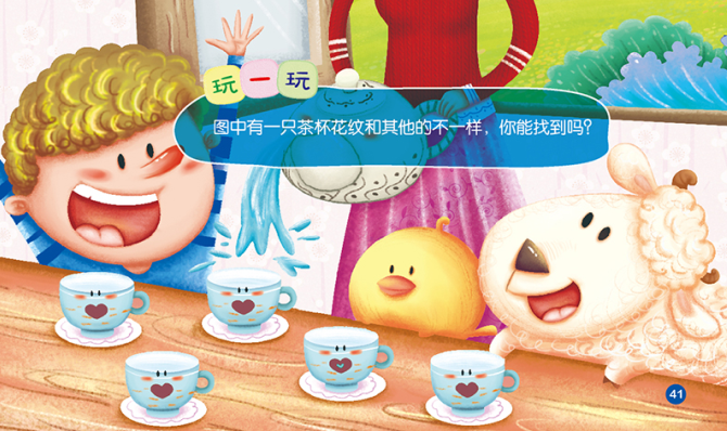 精美的插画中藏着好玩的找物游戏,和爸爸妈妈比一比看谁先找到?大多数时候会是宝宝先找到哦,不信就试试吧。