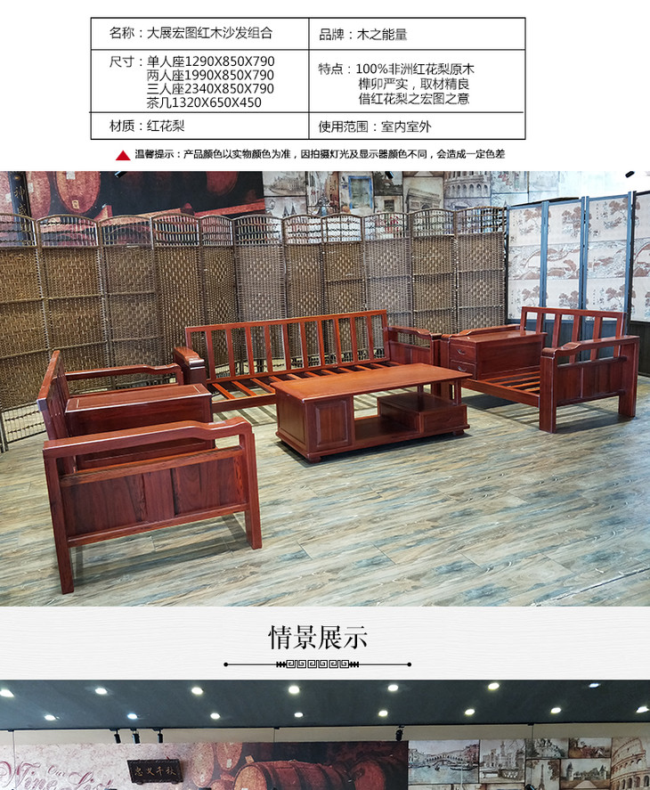 大展宏图红木沙发组合(1+2+3+茶几) 运费到付