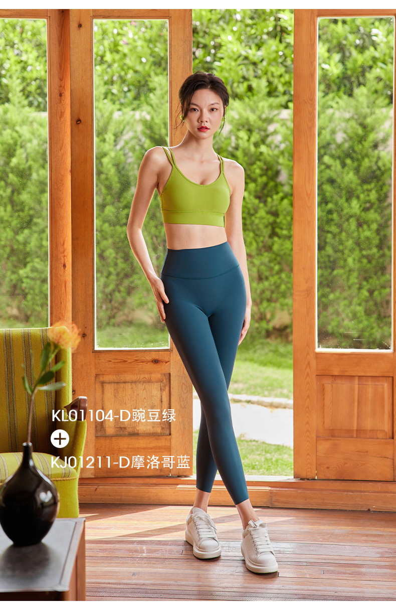 LEANA丽娜【交叉后口袋套装】裸感瑜伽运动套装交叉美背+后口袋九分裤1050+7026