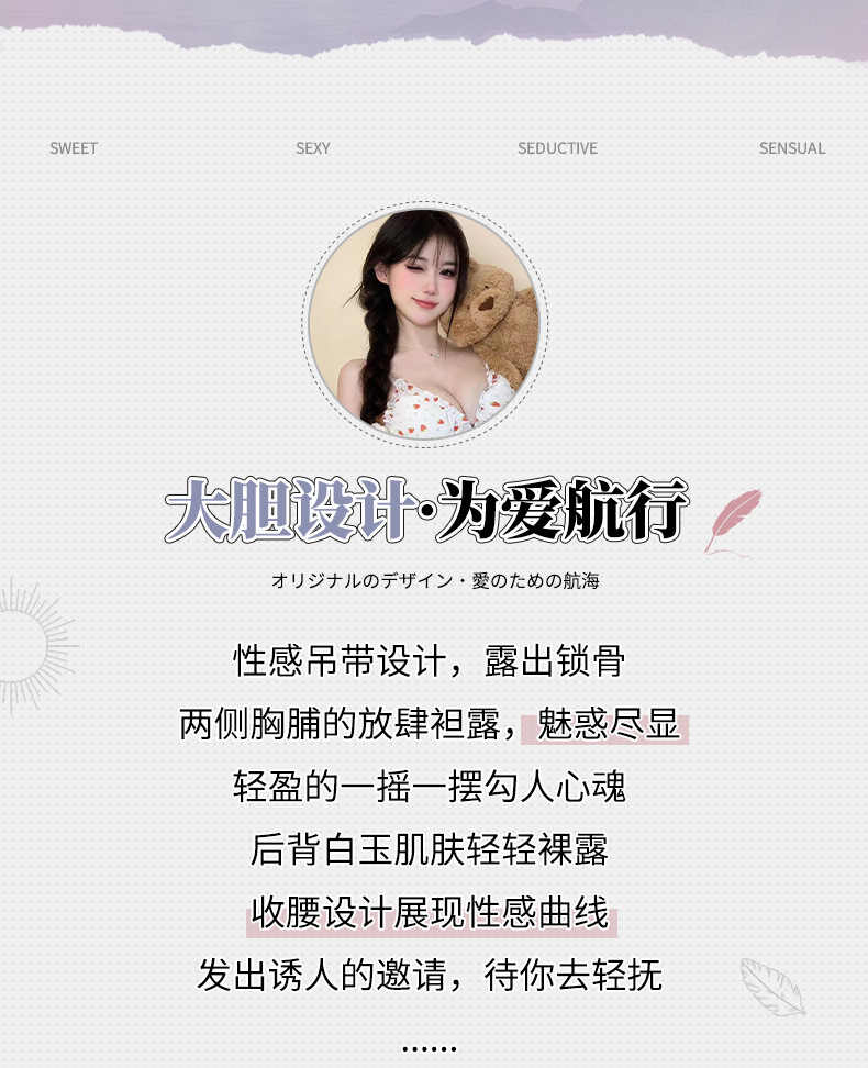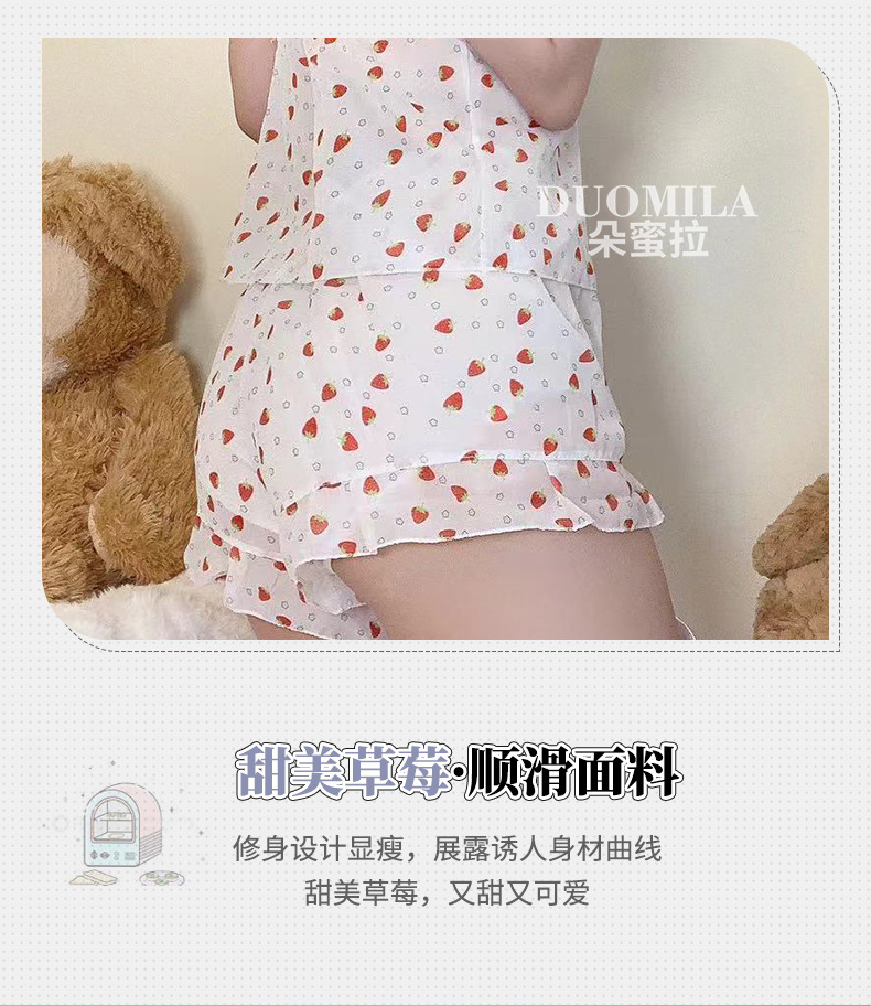 【送丝袜❗纯欲草莓吊带睡衣】魅惑情趣内衣,深V设计大胆露沟,顺滑面料,甜美包臀性感睡衣短裤短裙家居服套装QQ