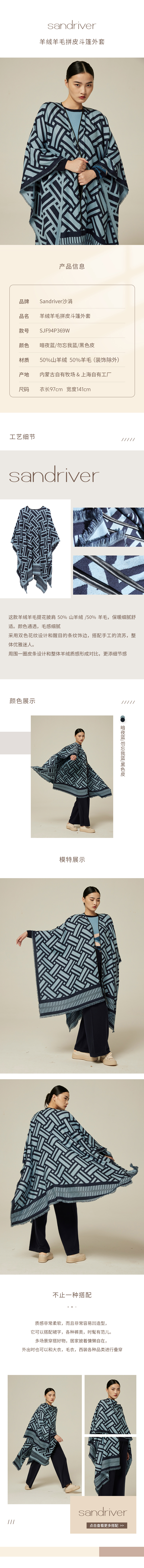历年在巴黎时装周亮相,享誉世界的艺术羊绒品牌[Sandriver 沙涓]由羊绒布道者郭秀玲女士创立。阿拉善自有牧场纯种羔羊绒,日本国宝设计师小筱顺子,上海自有基地精工细作。承载羊绒情怀,坚持匠人品质。