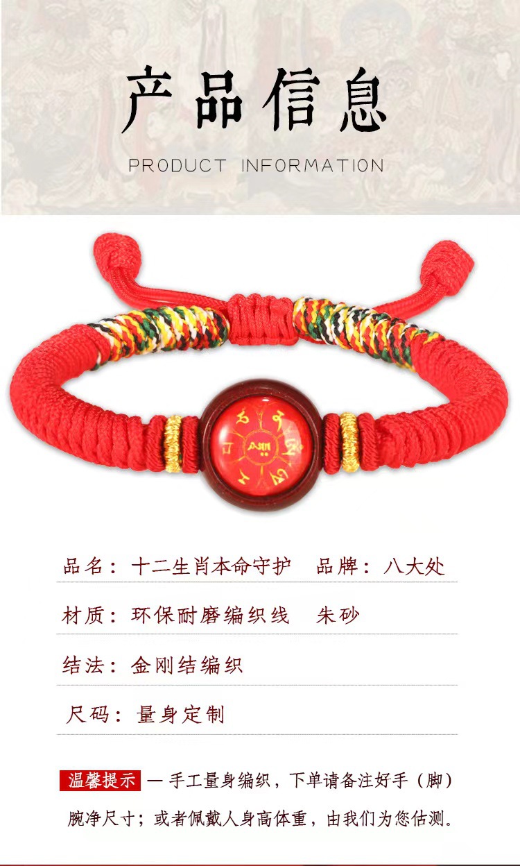 【本命佛❗️十二生肖朱砂手链】手工编织八大守护神,朱砂寓意福气满满,诸事顺利,自戴送礼兼具价值,本命佛朱砂手绳男女金刚五彩绳本命年红绳QQ