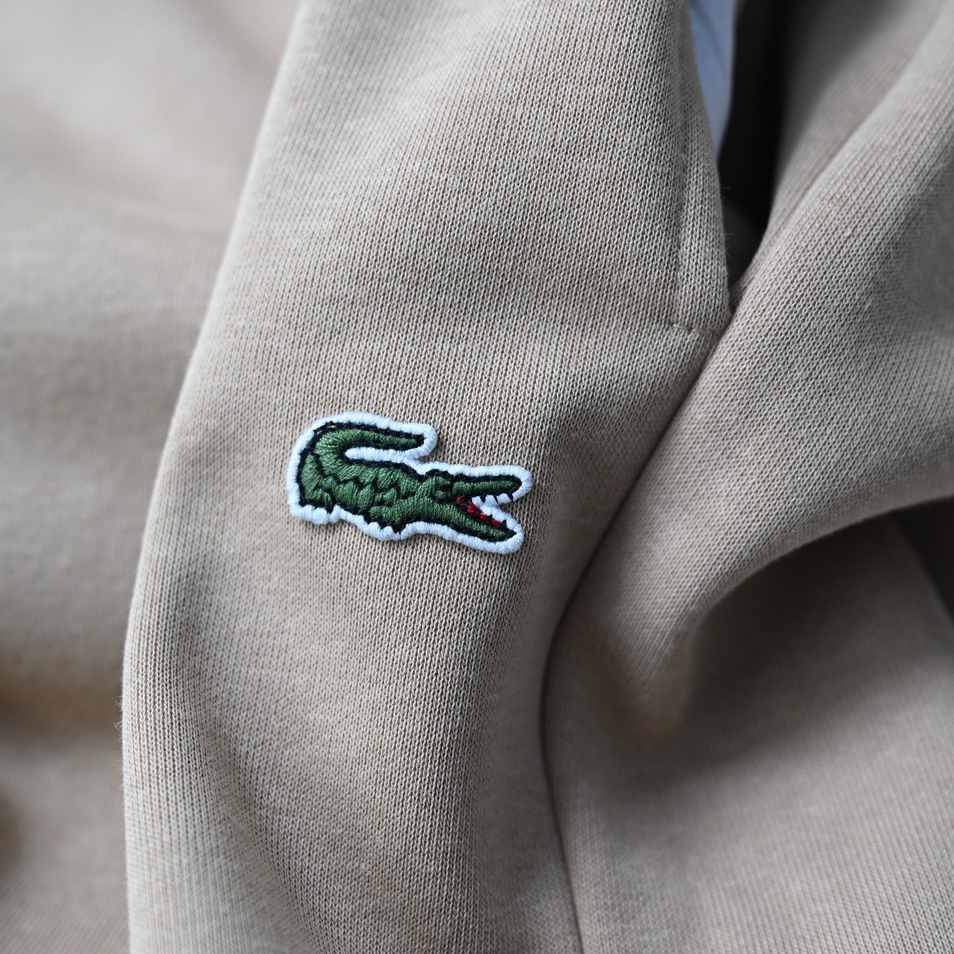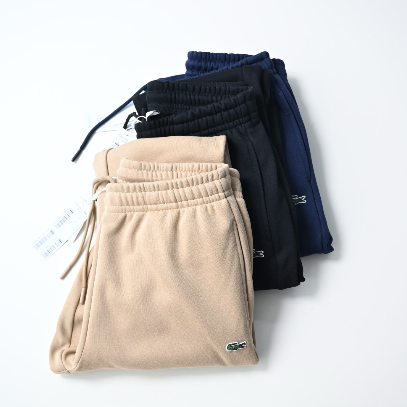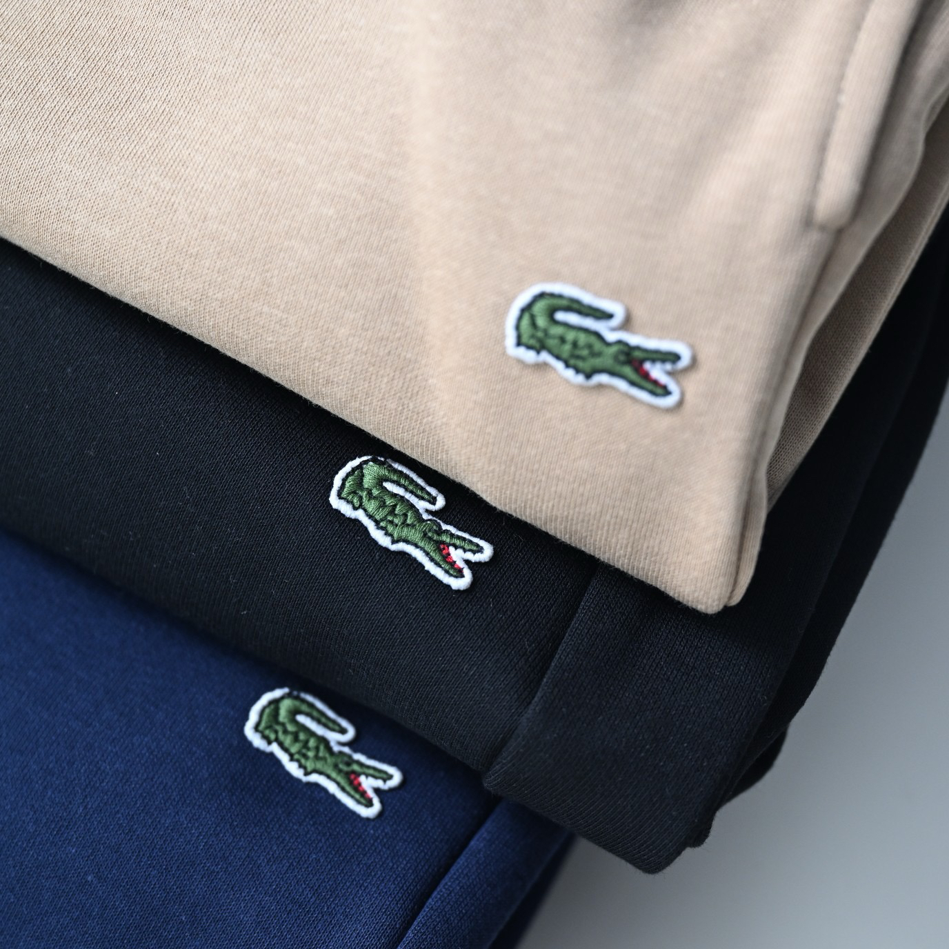 口袋小鱼仔徽章logo,法鳄棉质混纺抓绒卫裤