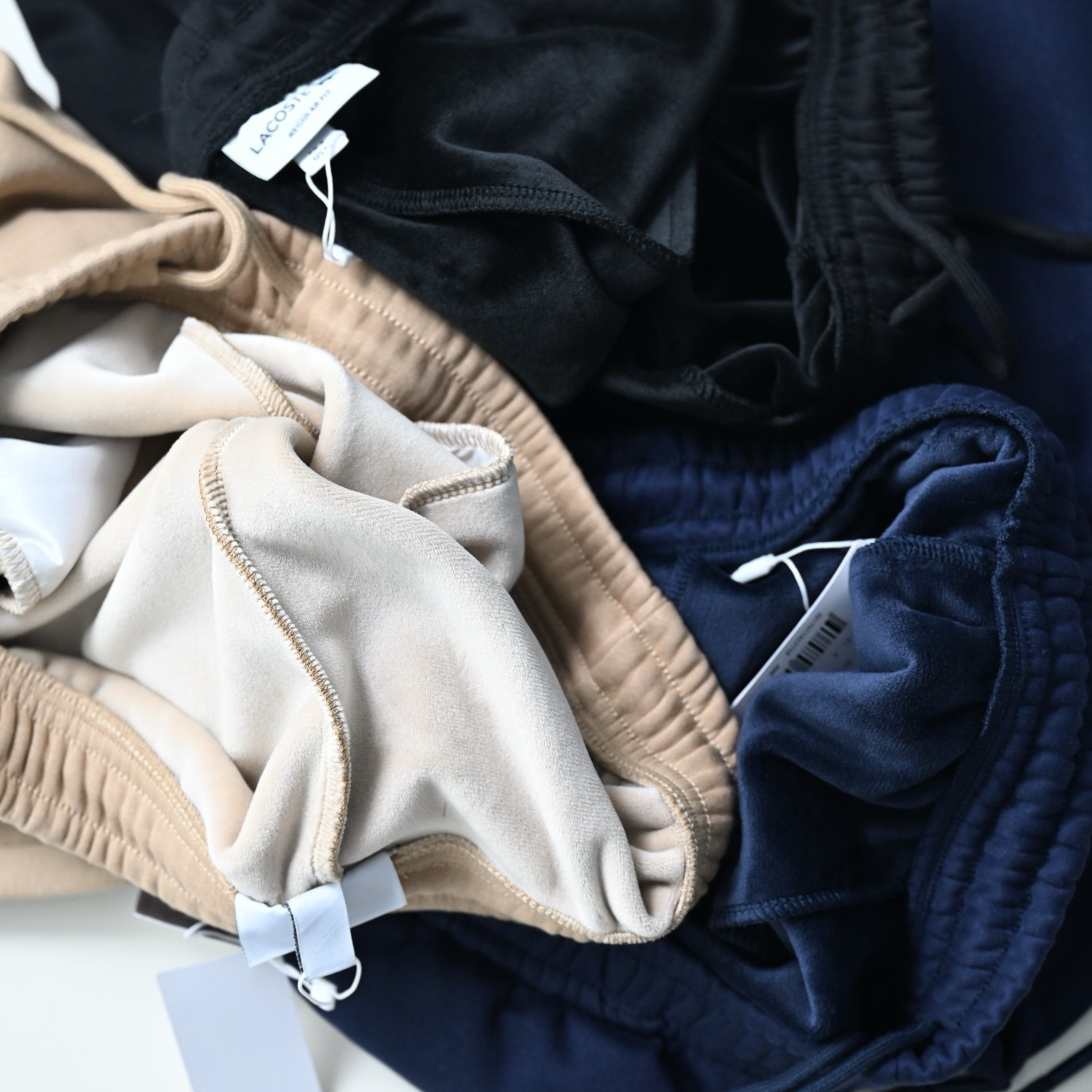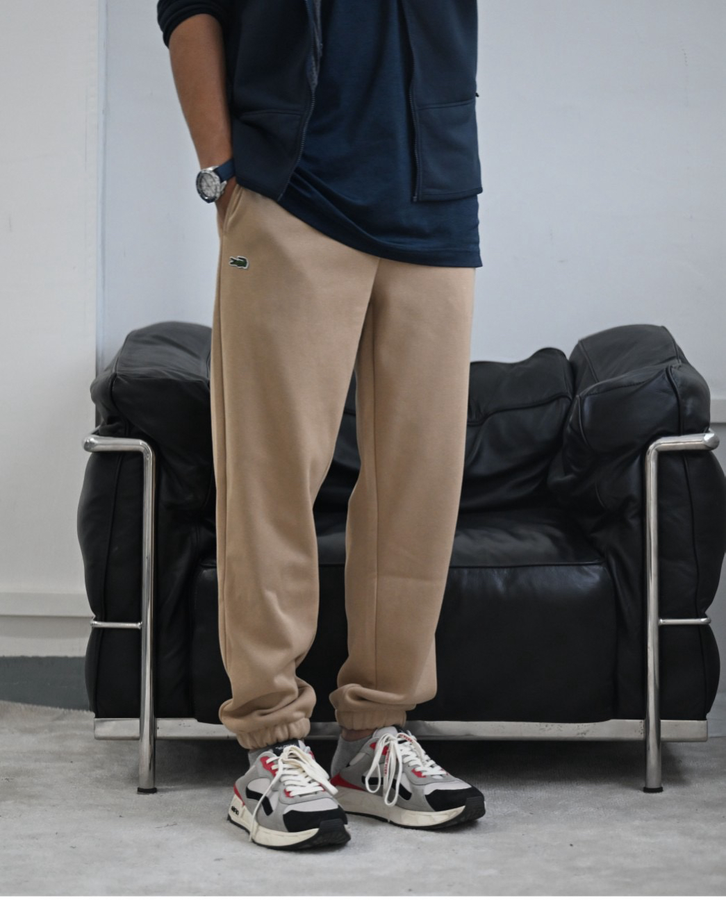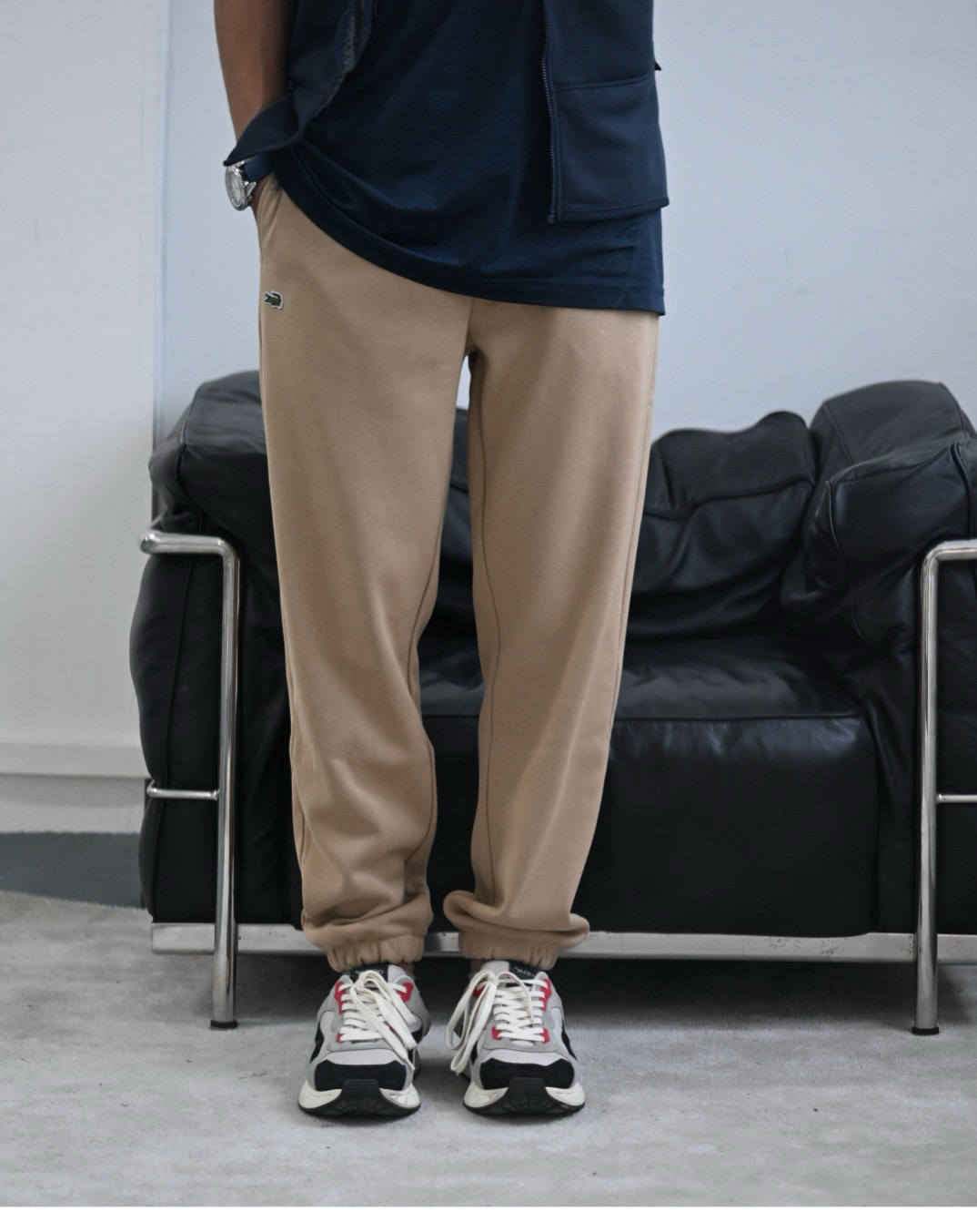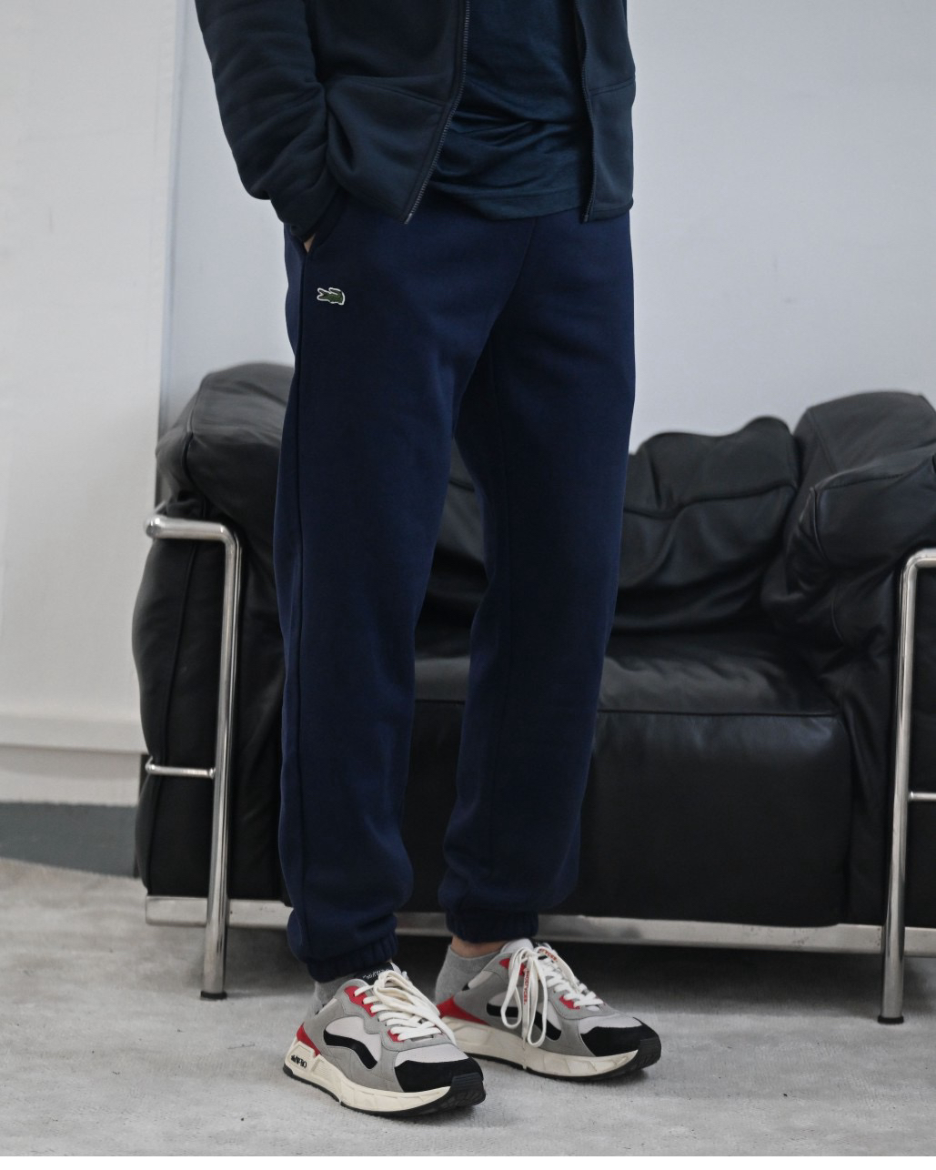口袋小鱼仔徽章logo,法鳄棉质混纺抓绒卫裤