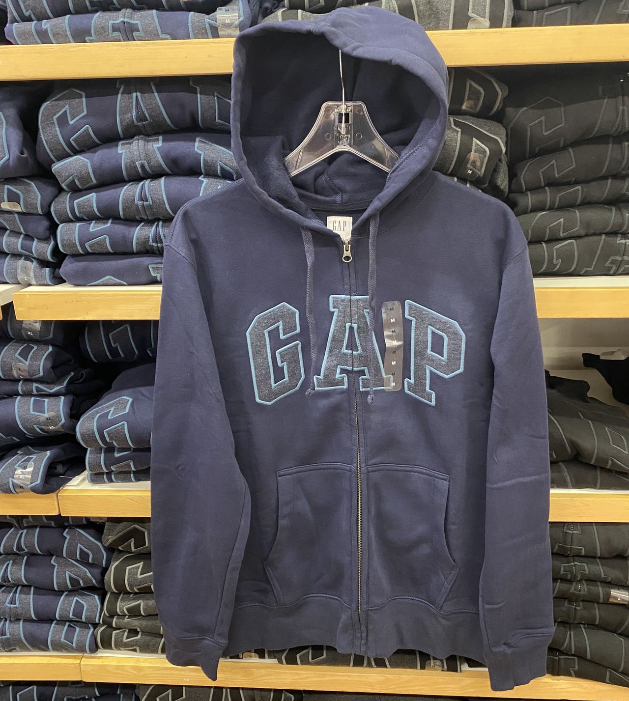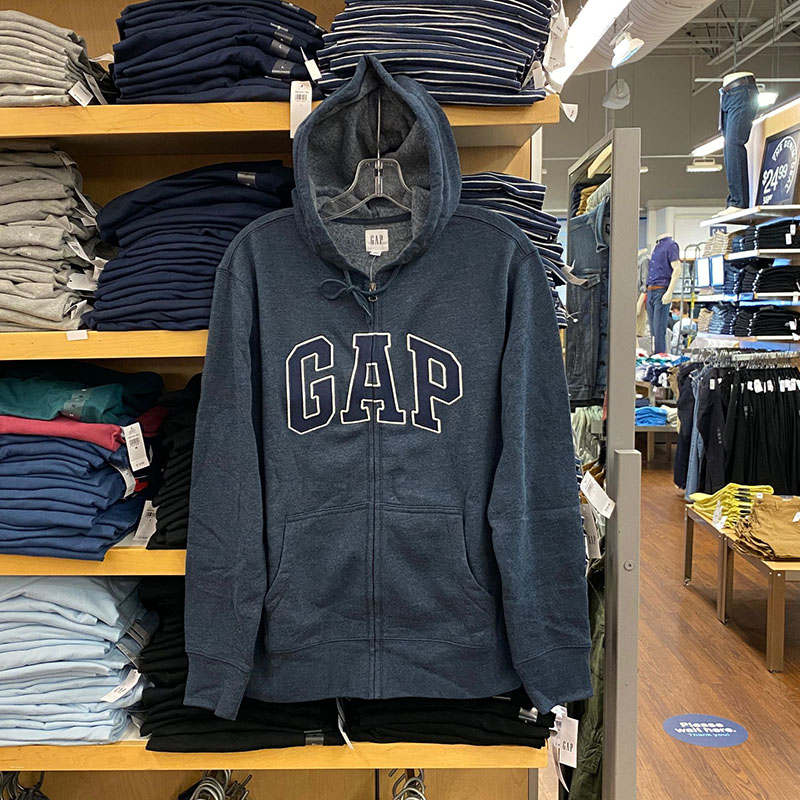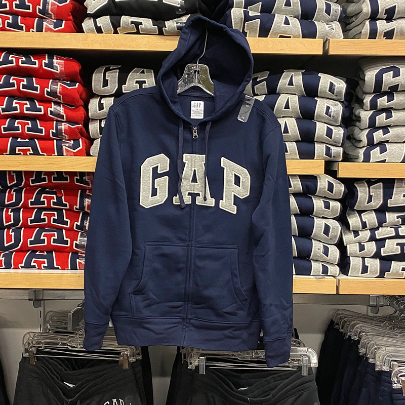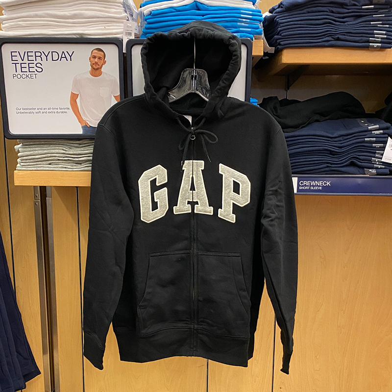 秋季新款 GAP 男士连帽抽绳开衫口袋字母大LOGO抓绒保暖卫衣