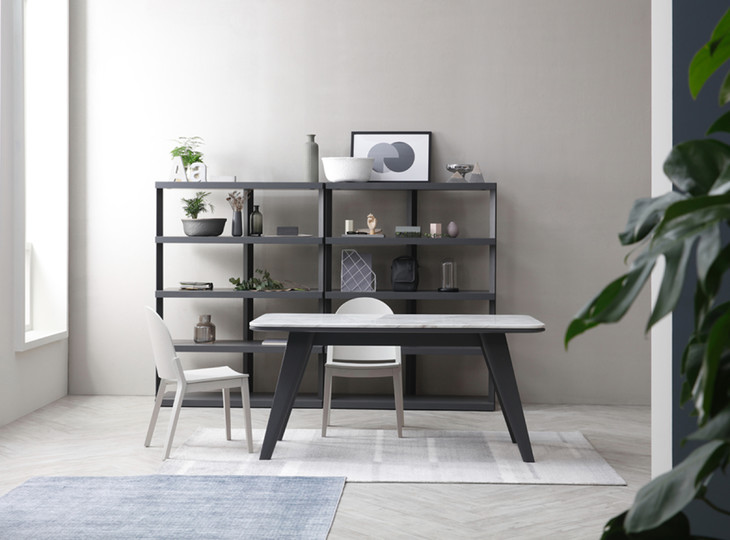 主材:白橡木贴皮冷灰修色+浅灰砂面铁喷粉