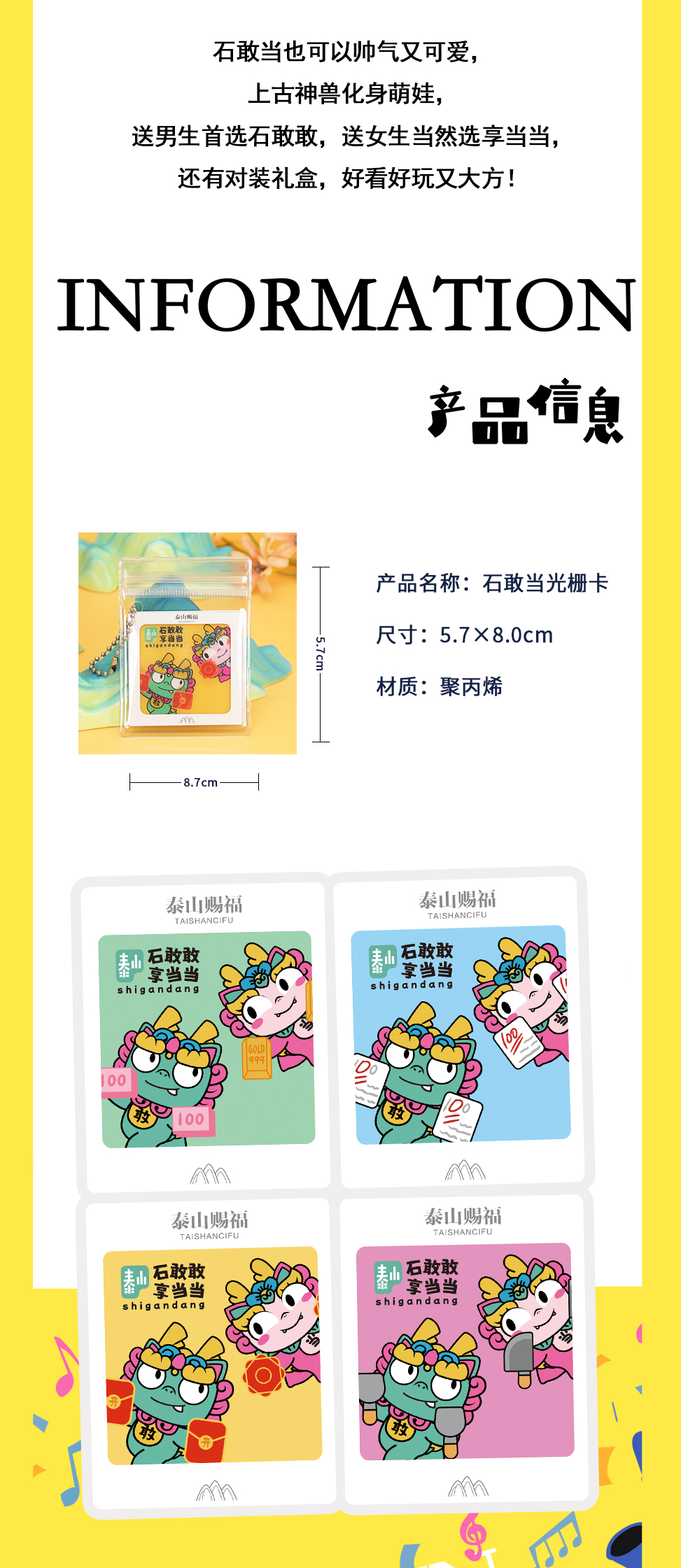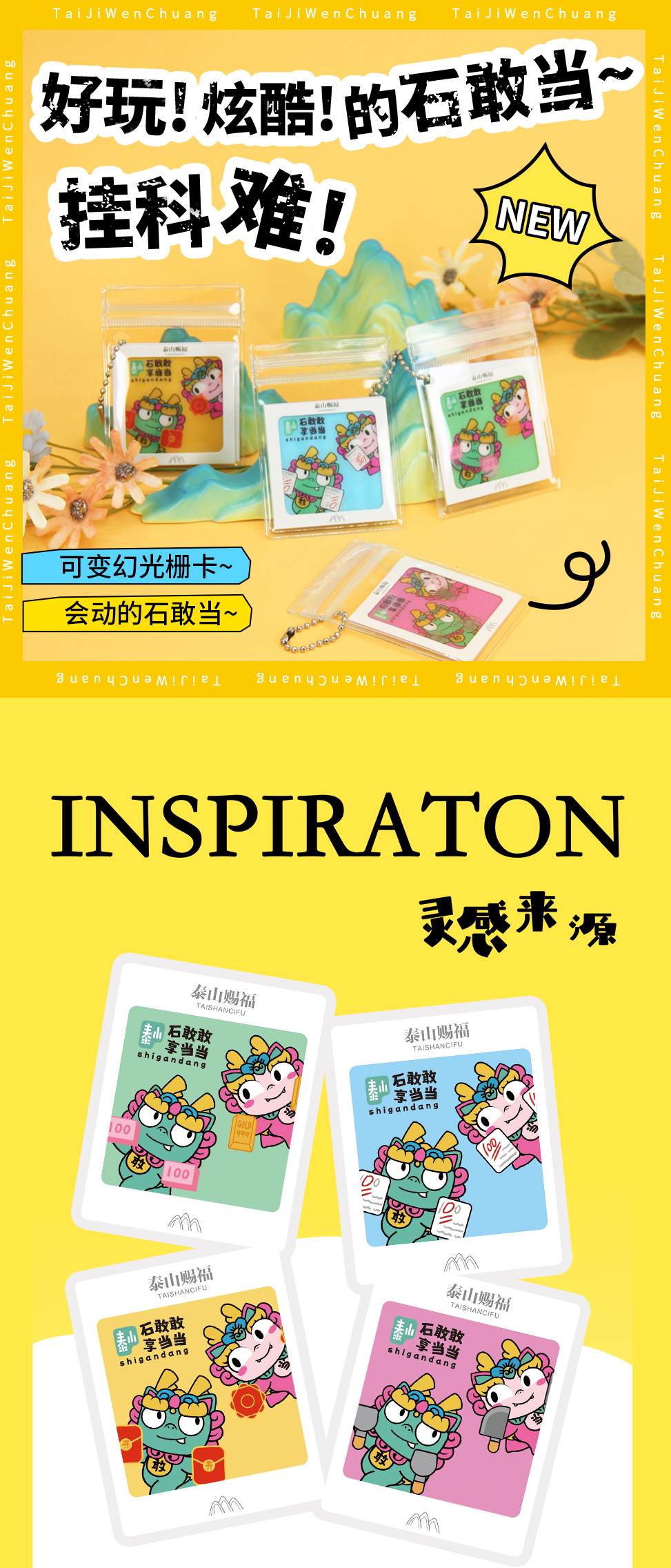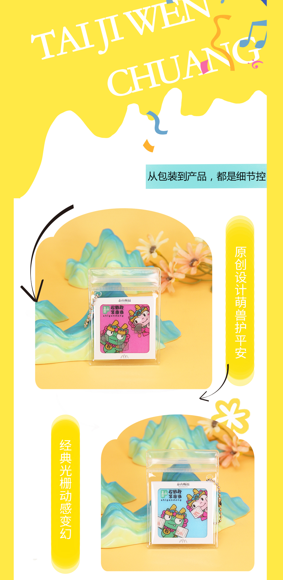 泰山文创石敢当光栅卡可爱挂饰平安包挂