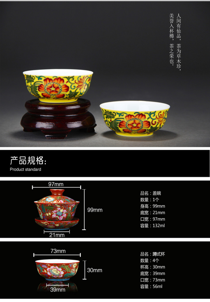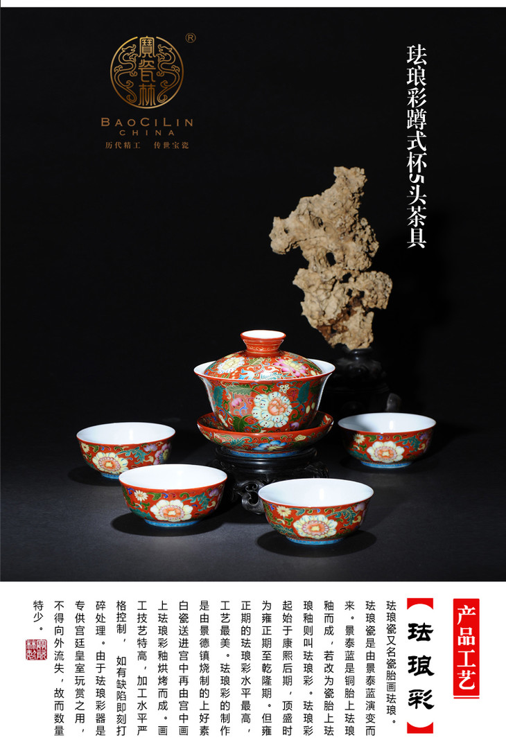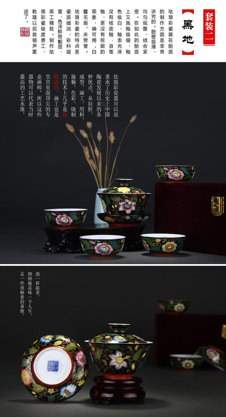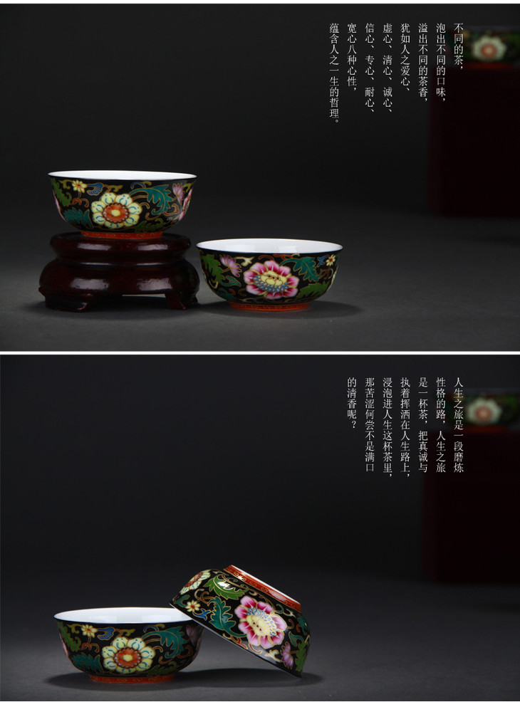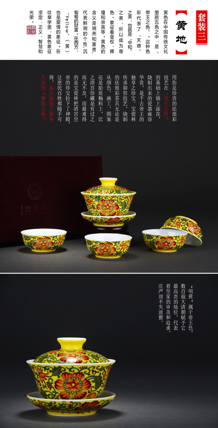 【宝瓷林】红地 黑地 黄地珐琅彩蹲式杯5头茶具