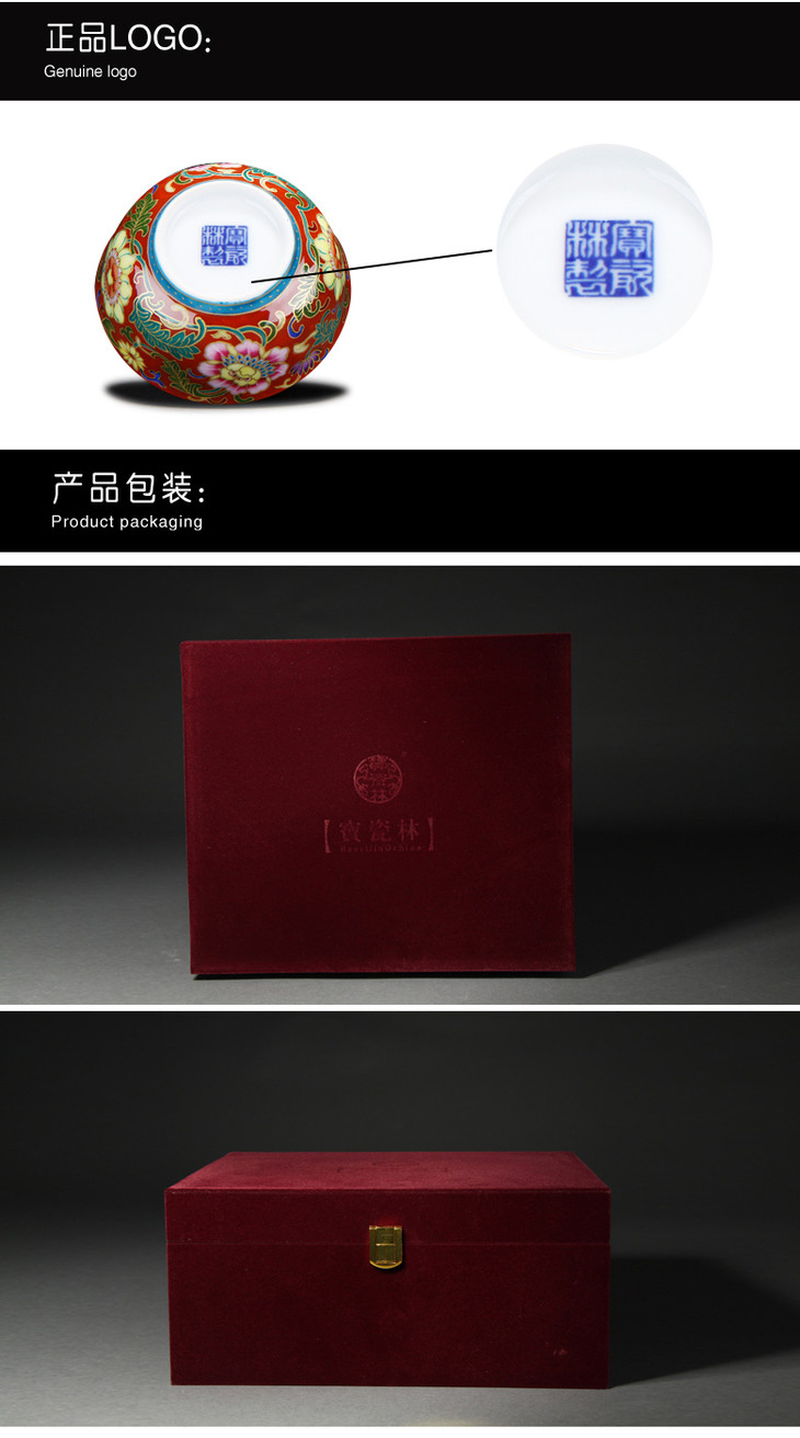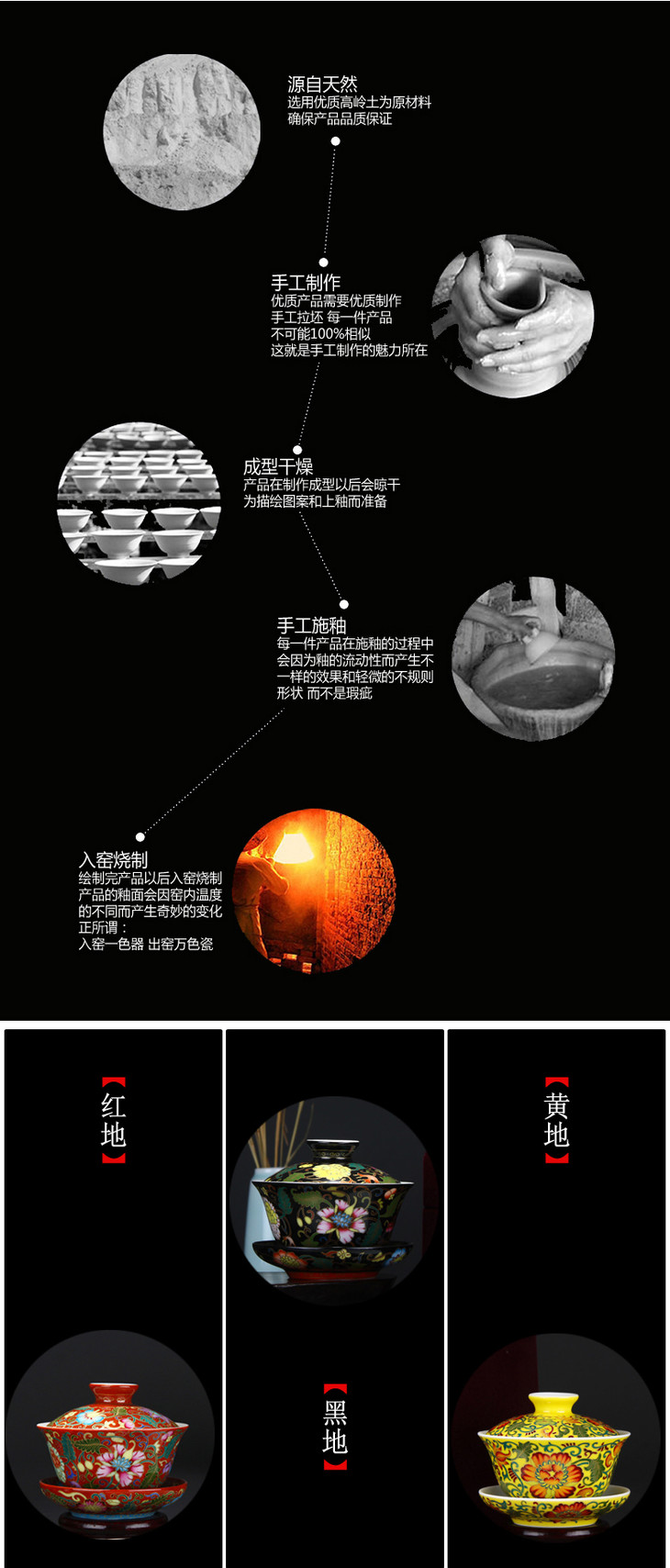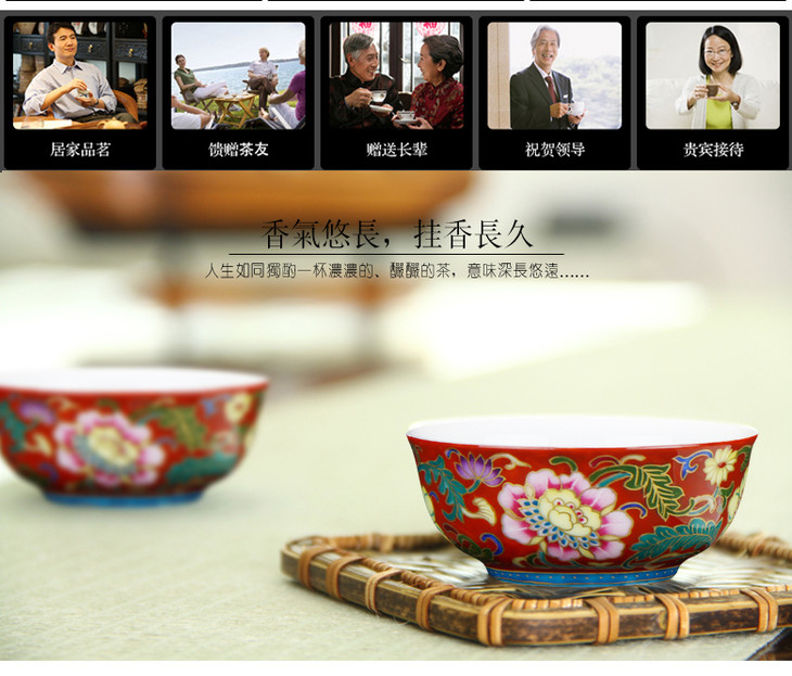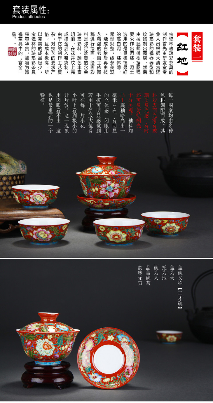 【宝瓷林】红地 黑地 黄地珐琅彩蹲式杯5头茶具