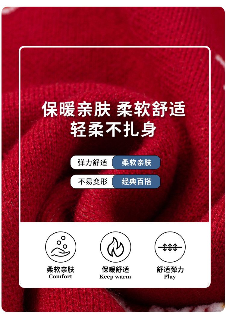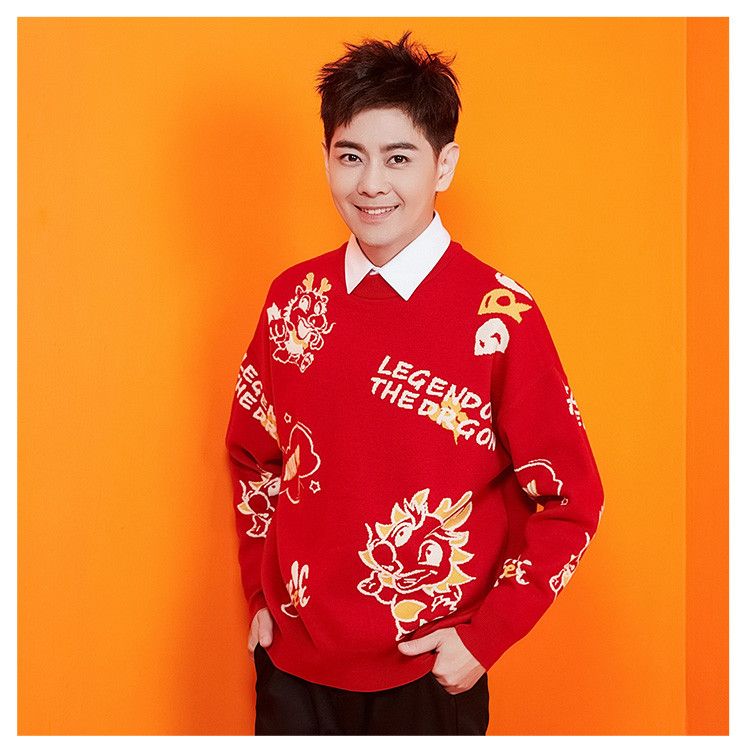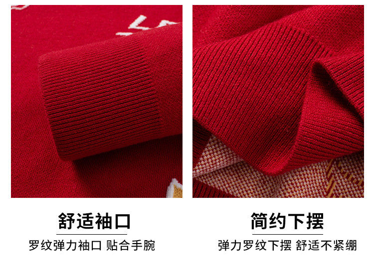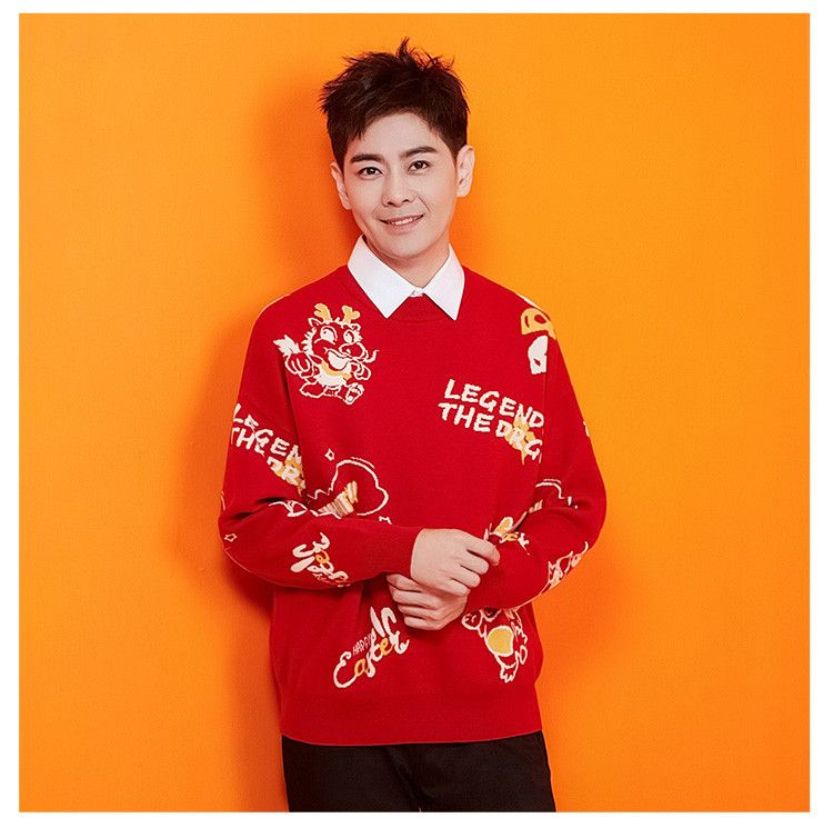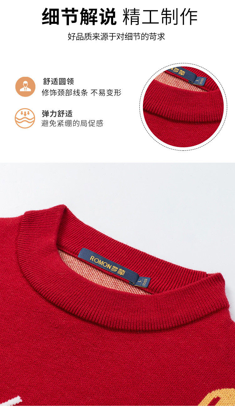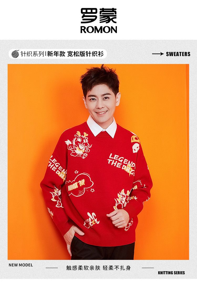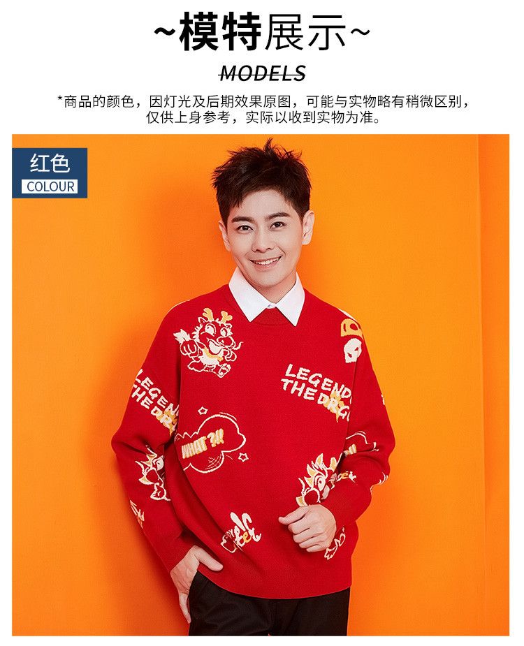 【明星款】罗蒙秋冬林志颖同款龙年毛衣男时尚红色毛衣男士毛衣男士针织衫