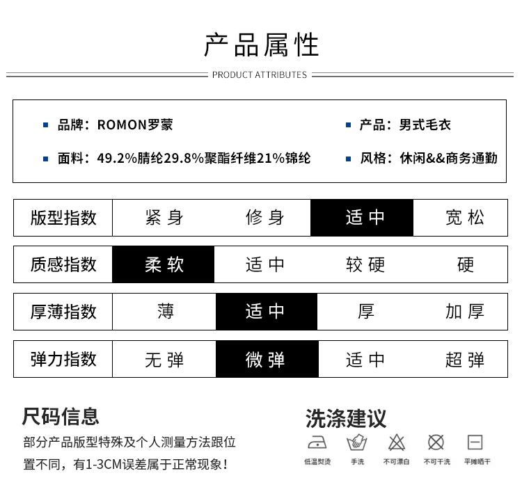 面料:49.2%腈纶29.8%聚酯纤维21%锦纶
