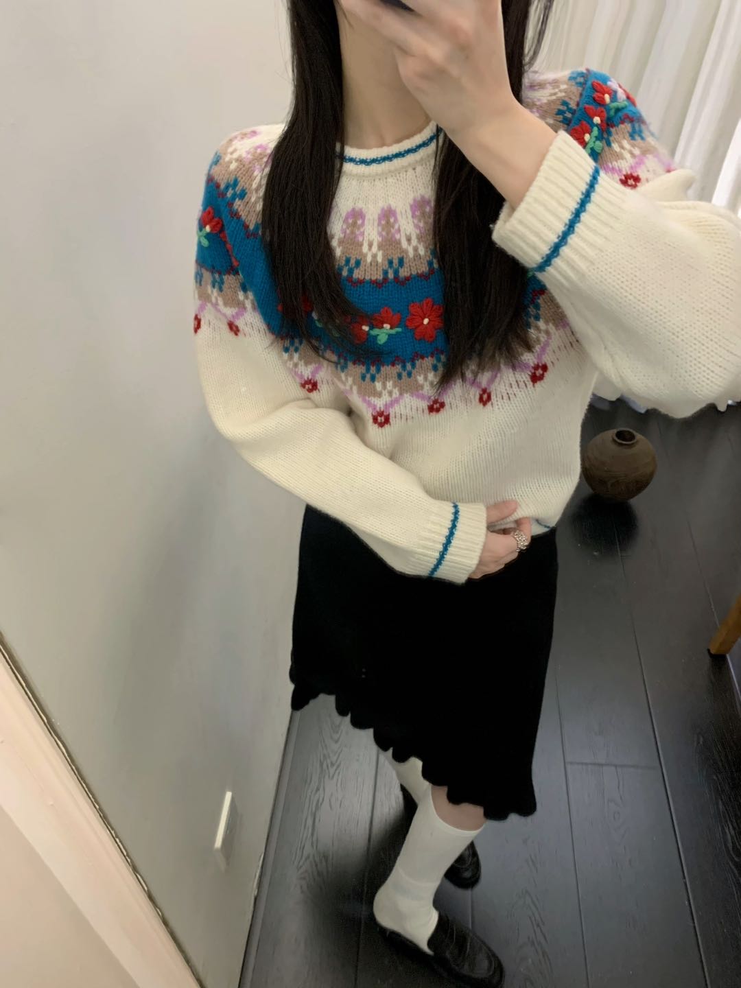 SZ6E02_凝脂色_针织衫_冬季_圆领长袖提花宽松_高级女装_BERNIEELEN 伯妮斯茵