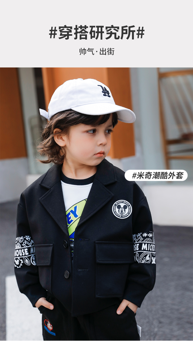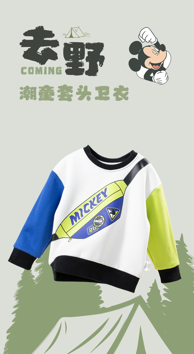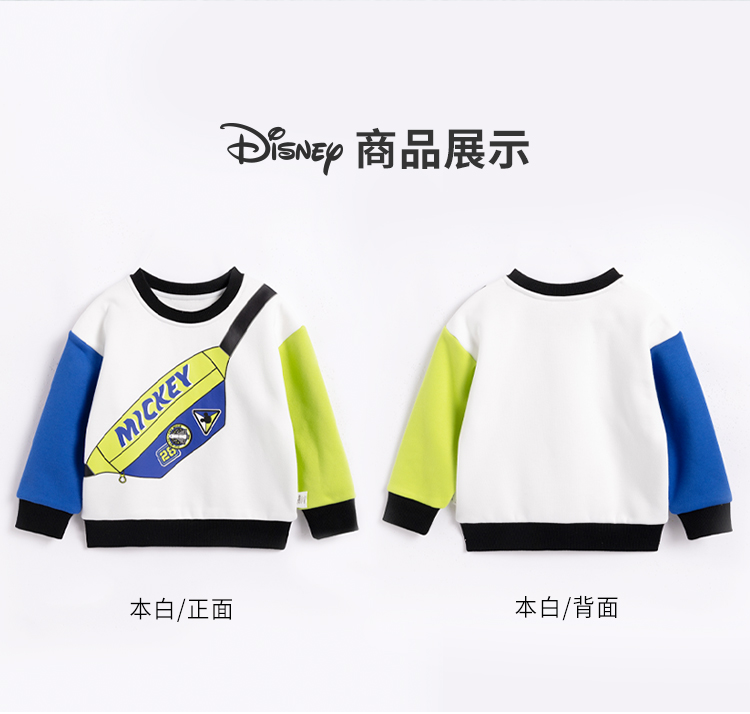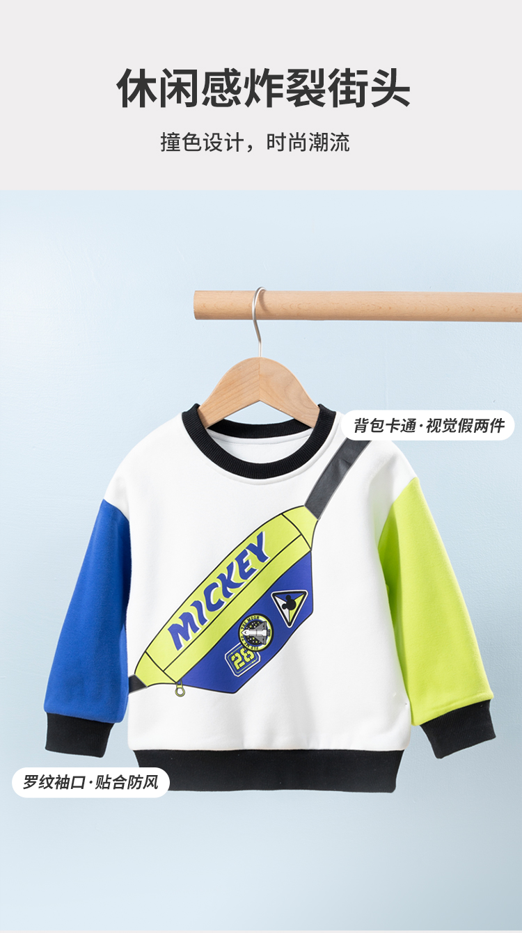 【商场同款】迪士尼童装男童春秋款套头上衣潮童撞色休闲卫衣加绒保暖时尚卫衣223DS0754