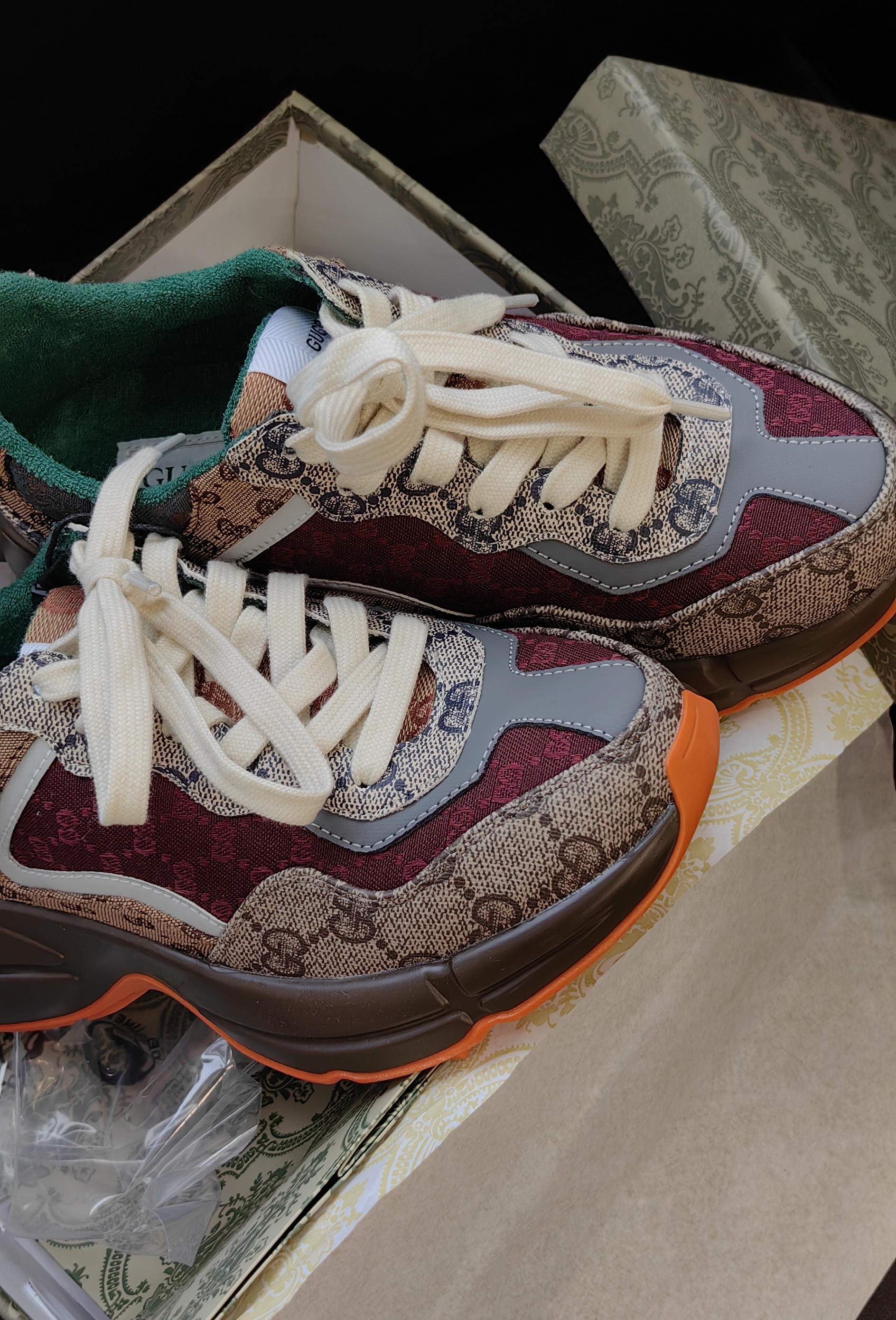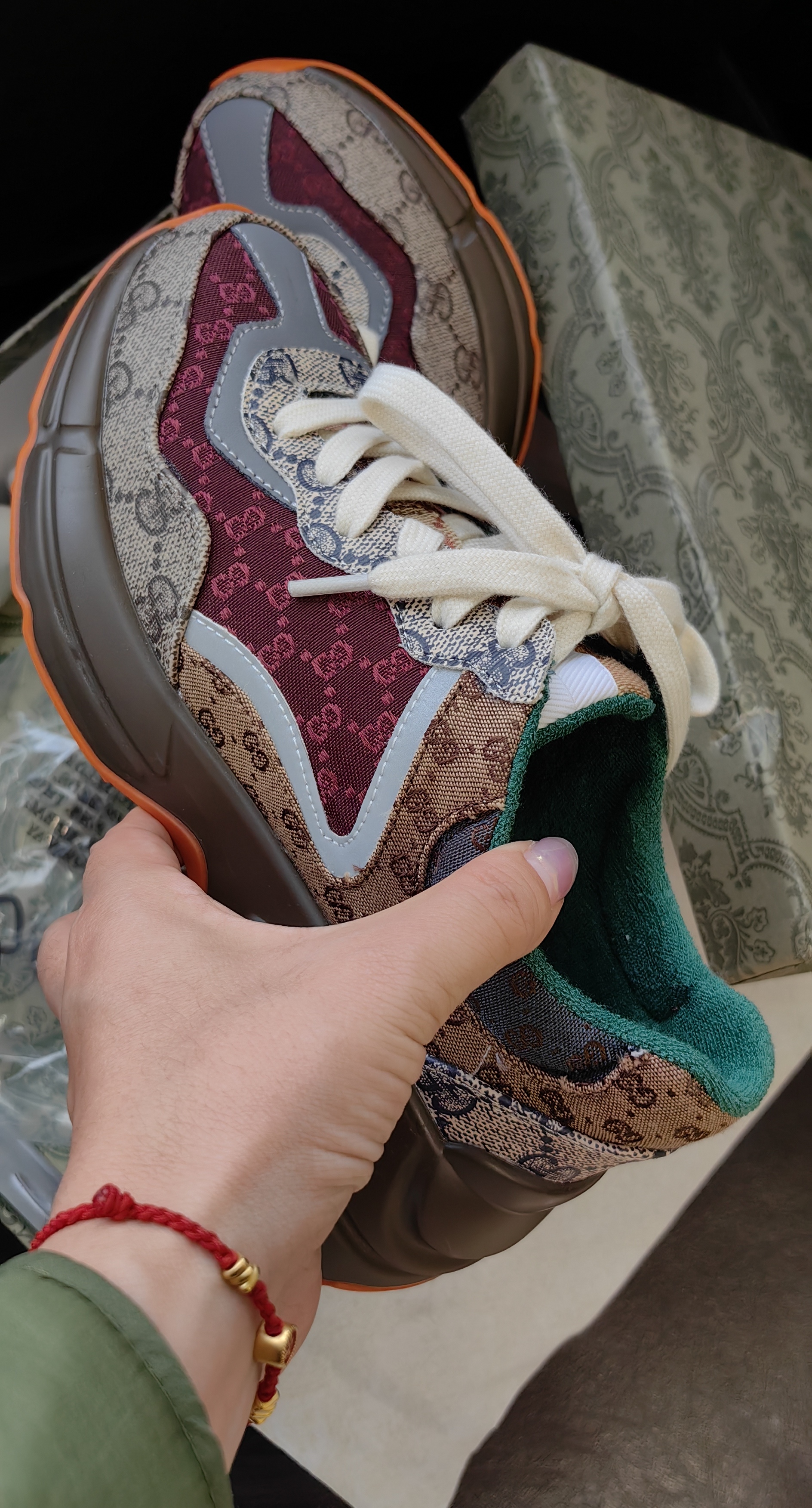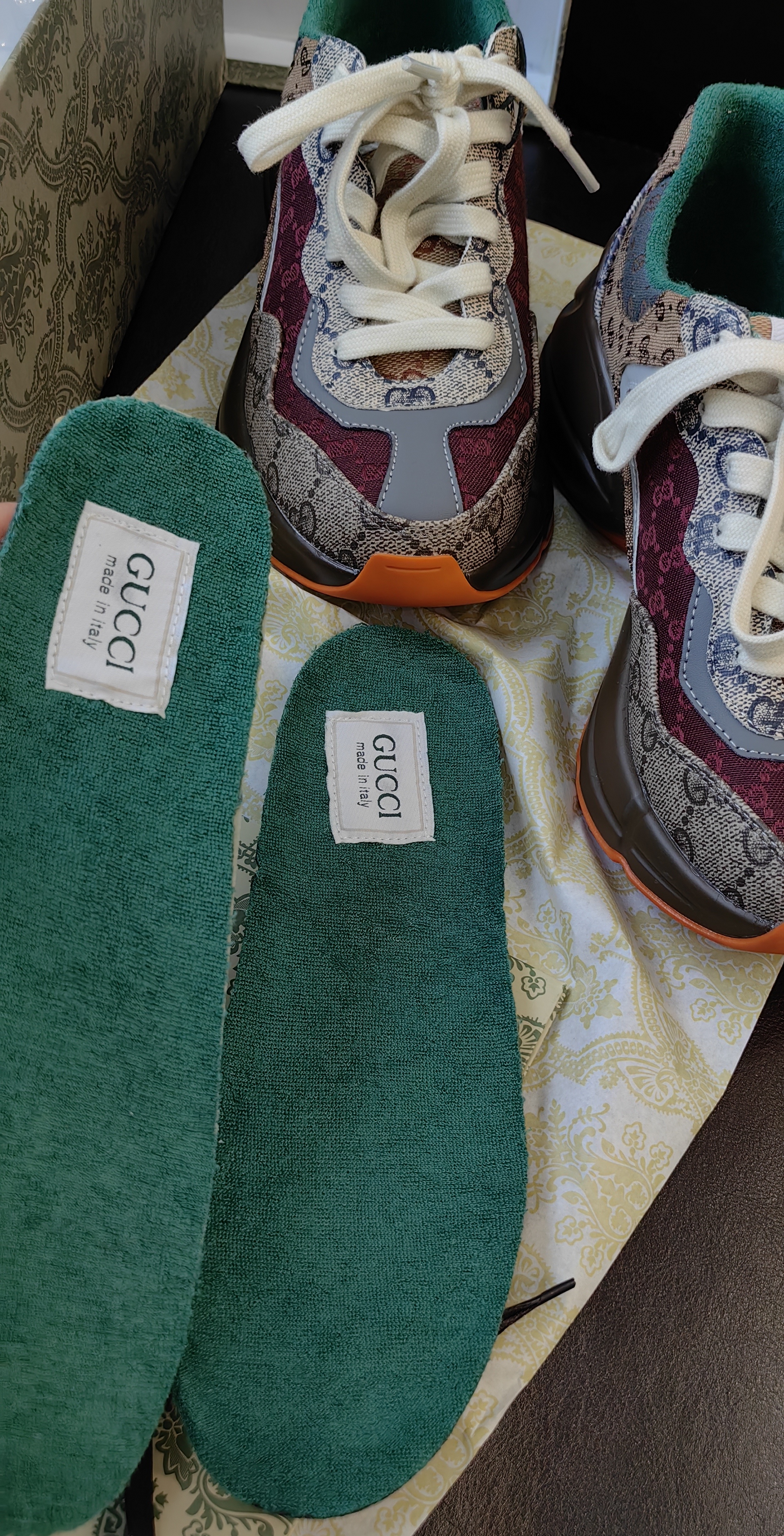 鞋码很正,脚背高脚胖也不需要拍大一码,鞋子不重,鞋跟加内增高5cm,自然增高,环保空胶工艺,老花皮革加织布,鞋面内里太空棉,鞋跟后部毛巾棉,鞋垫软乳胶,鞋垫面毛巾棉。