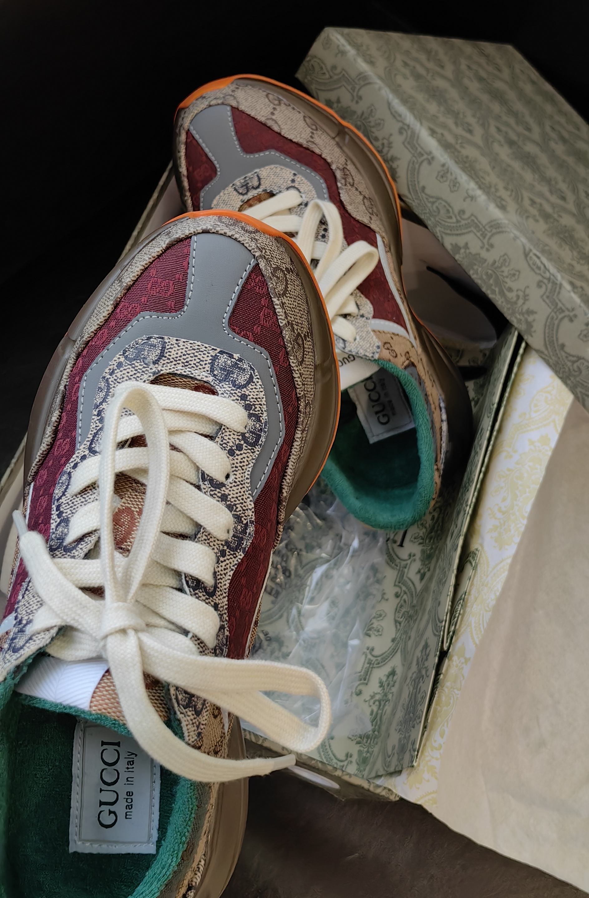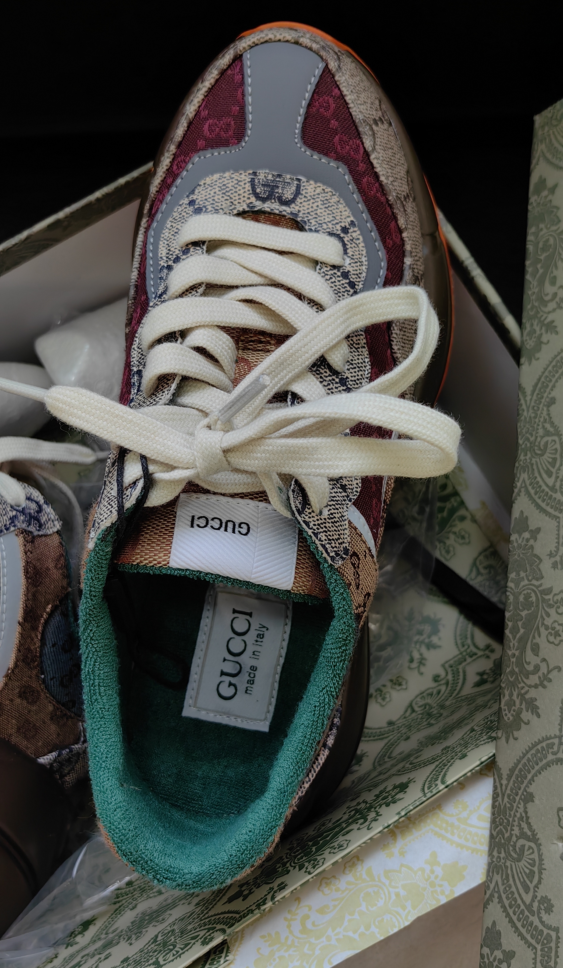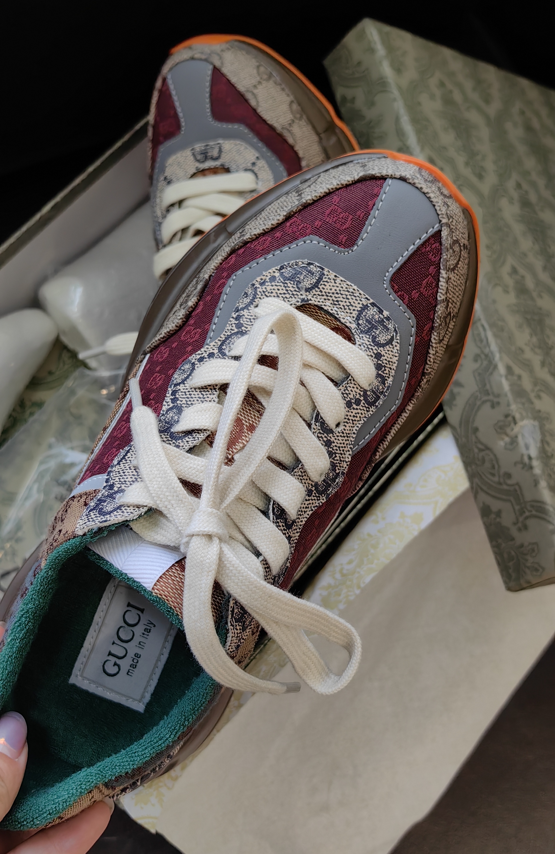 鞋码很正,脚背高脚胖也不需要拍大一码,鞋子不重,鞋跟加内增高5cm,自然增高,环保空胶工艺,老花皮革加织布,鞋面内里太空棉,鞋跟后部毛巾棉,鞋垫软乳胶,鞋垫面毛巾棉。