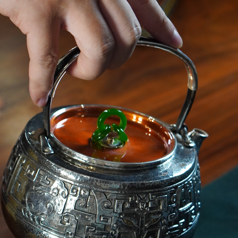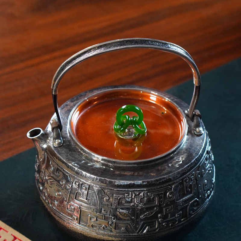 杨兴录1L饕餮纹提梁壶 约510g左右