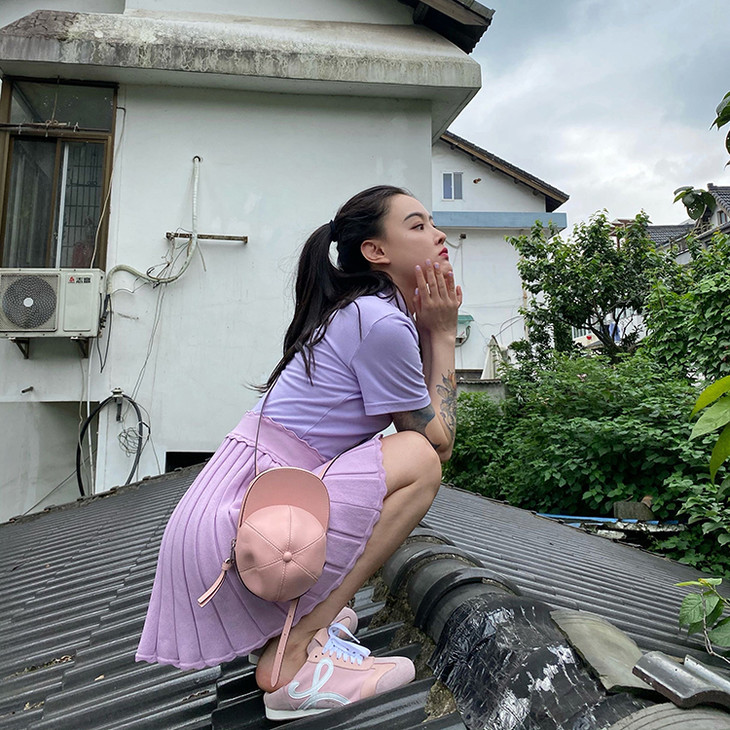 DUO智仙生粉标紫气东来好运少女新中式醋酸淡粉紫国风大褂和短裙