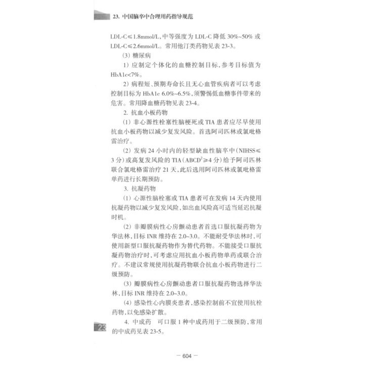 23. 中国脑卒中合理用药指导规范/ 587
