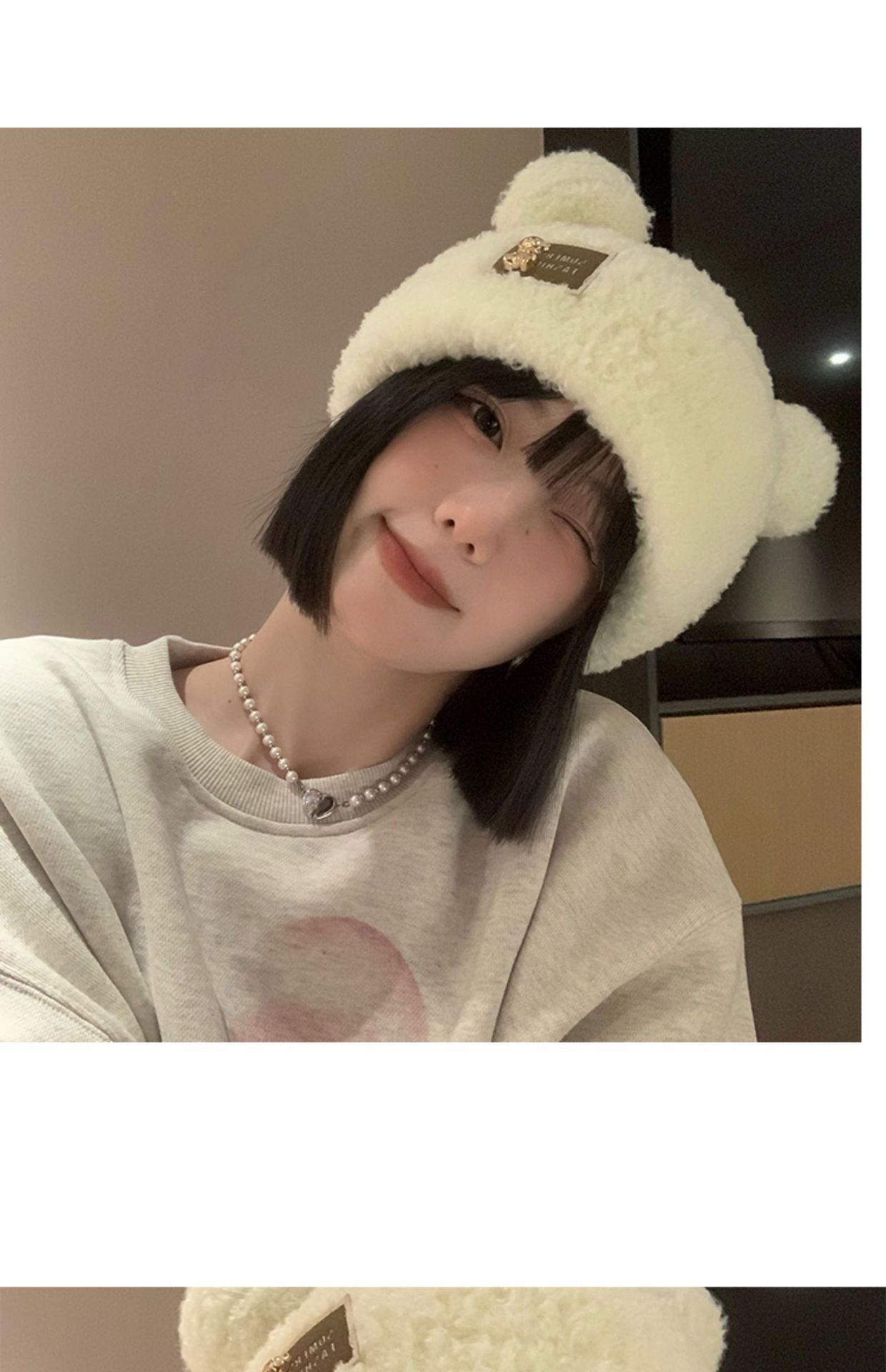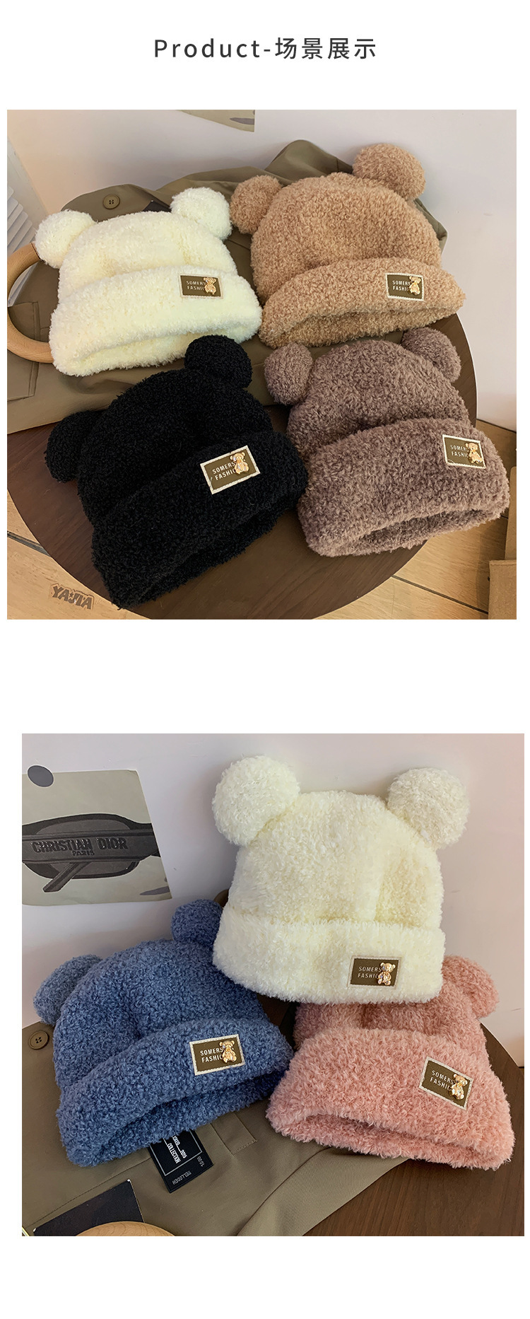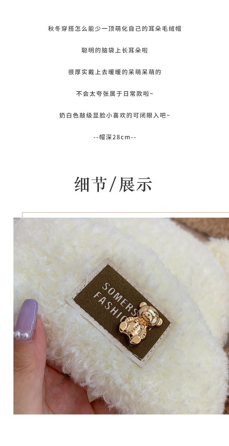 【韩版时尚布标!小熊耳朵帽】女秋冬季常备,外观可爱俏皮,内里加厚保暖,女秋冬季帽子羊羔毛小熊耳朵帽可爱加厚保暖毛绒帽
