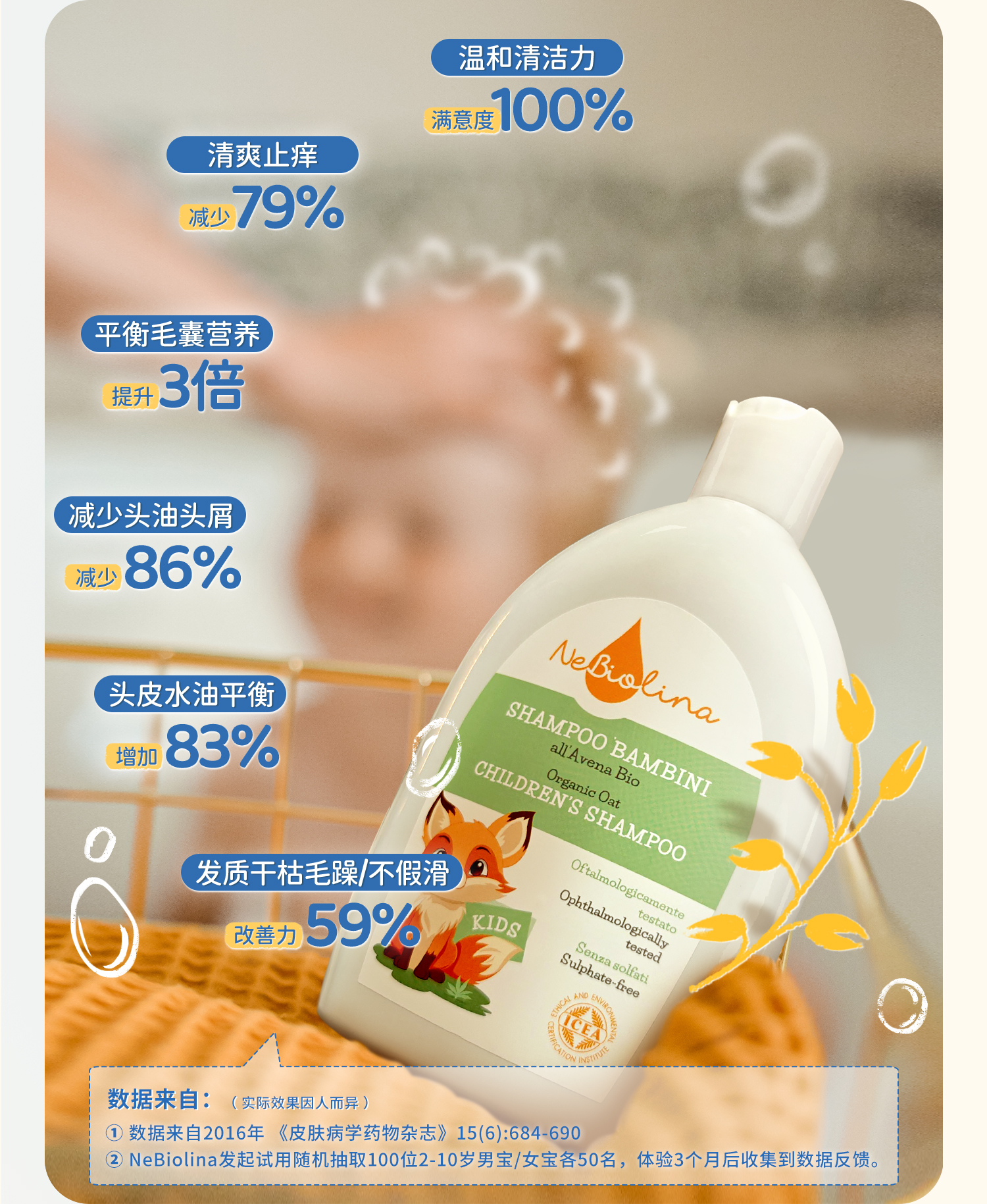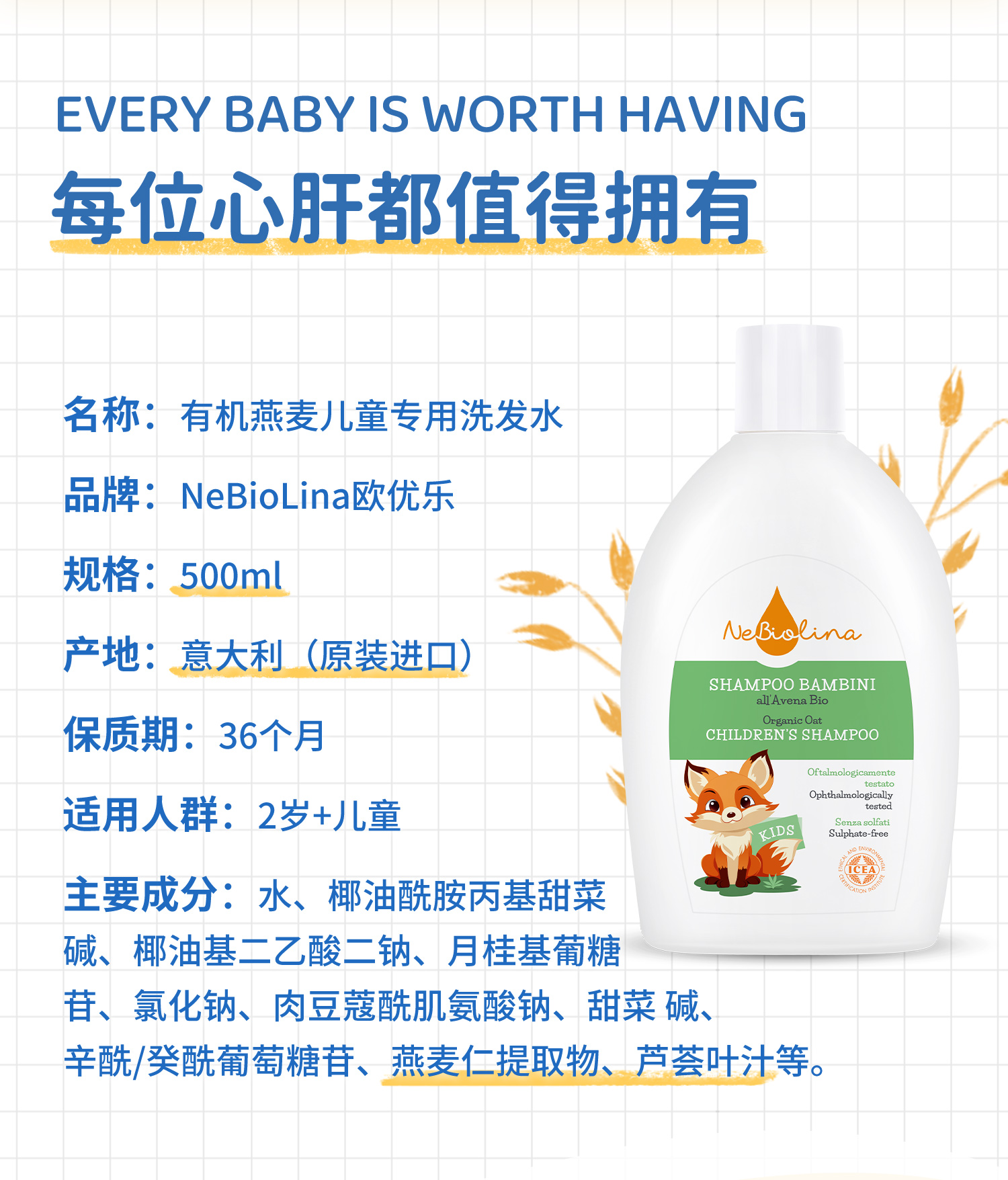 「下单即赠儿童洁面慕斯150ml」意大利Nebiolina欧优乐 · 儿童专用洗发水500ml大容量超值装|品牌直发