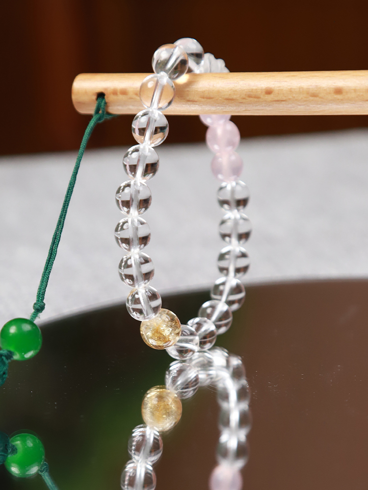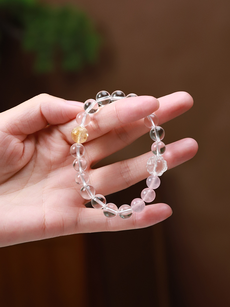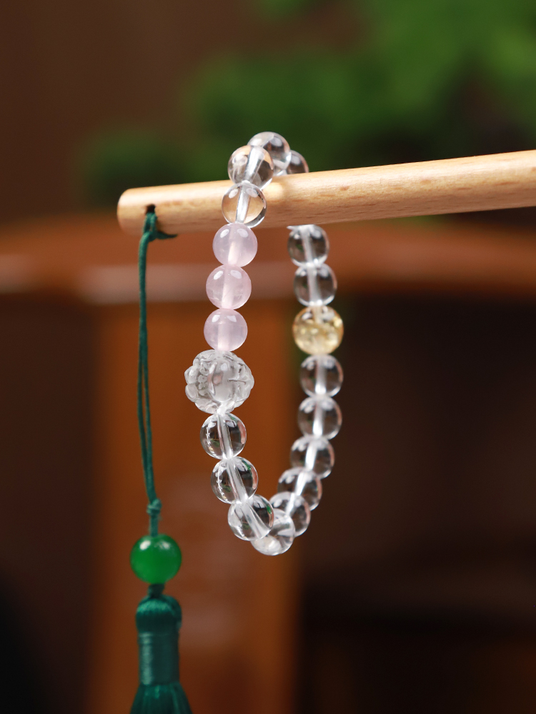 【2025年十二生肖手串】鸡女 能量矩阵“良田在守”粉水晶白水晶手串手链 女士单圈手串配饰【鸡女-建议戴左手】
