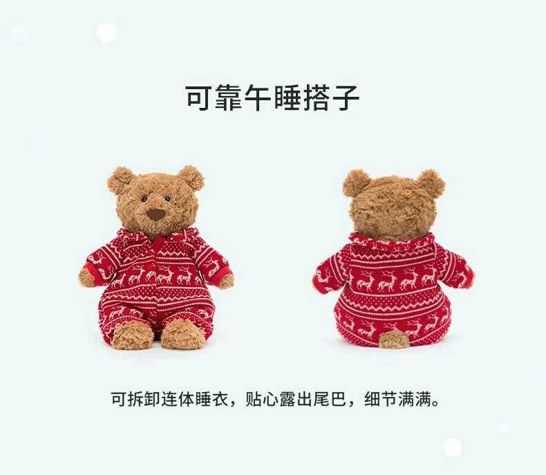 英国Jellycat巴塞罗熊冬日睡衣装毛绒玩具安抚玩偶儿童公仔娃娃生日礼物cj