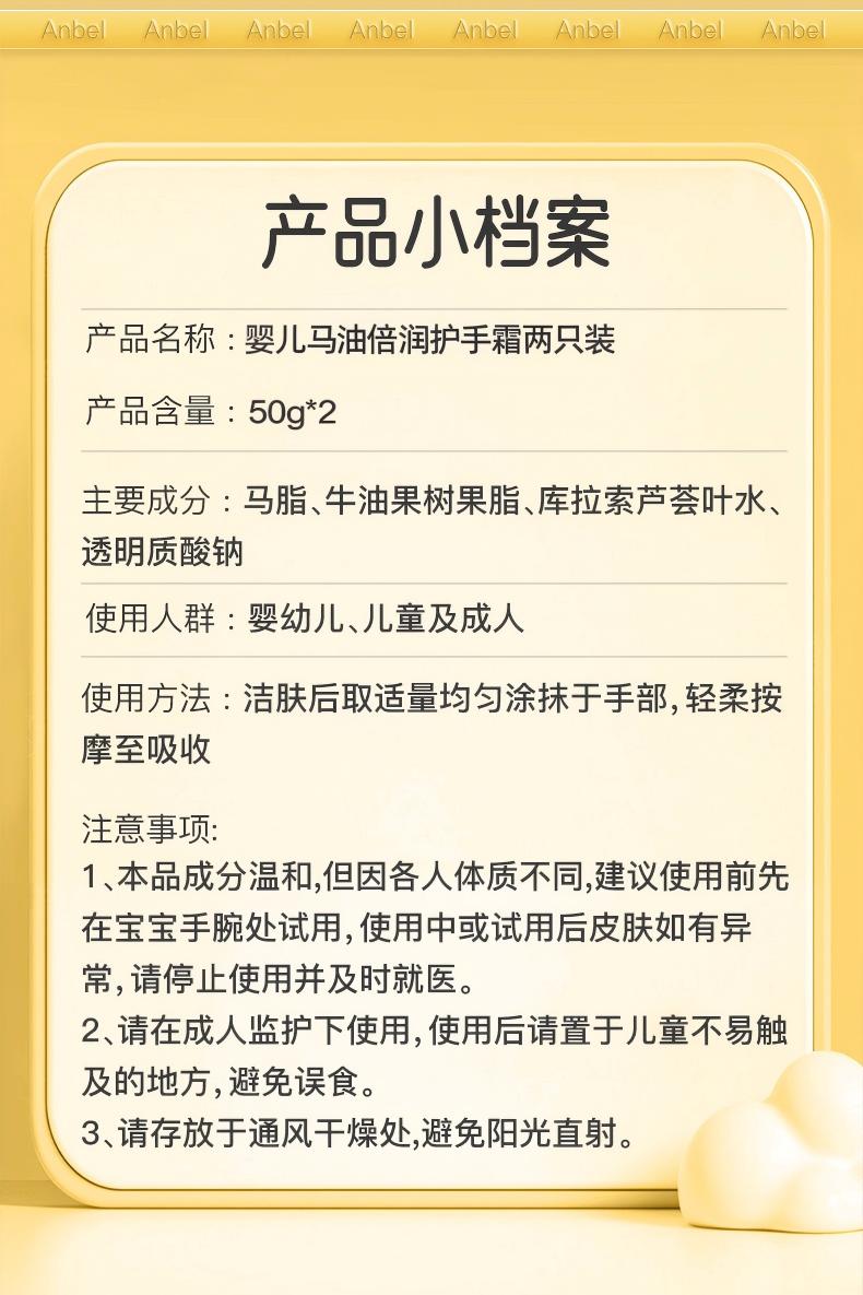 安贝儿 婴儿马油倍护霜送婴儿马油倍润护手霜50g+50g