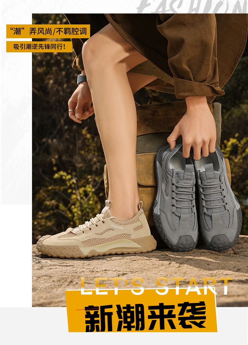 啄木鸟劳保鞋夏季透气网面镂空,运动防滑耐磨,休闲户外